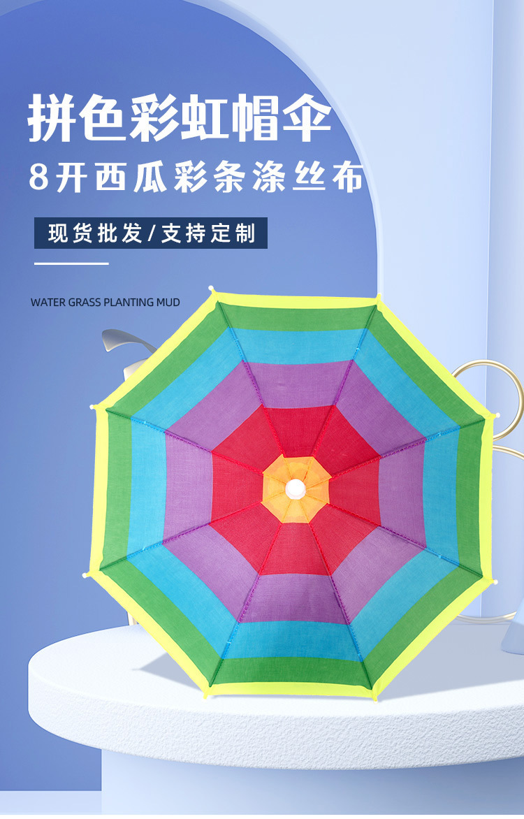 수박 무지개 우산 모자 우산 머리 착용 휴대용 야외 어린이 성인 비 및 비 이중 사용 양산 낚시 마구간 사용자 정의스토어 가기