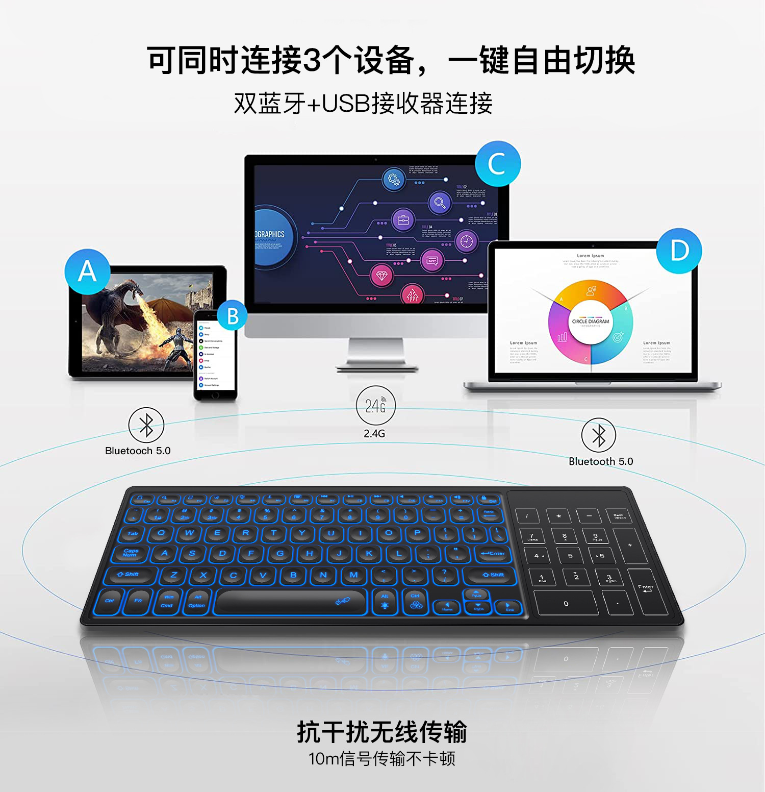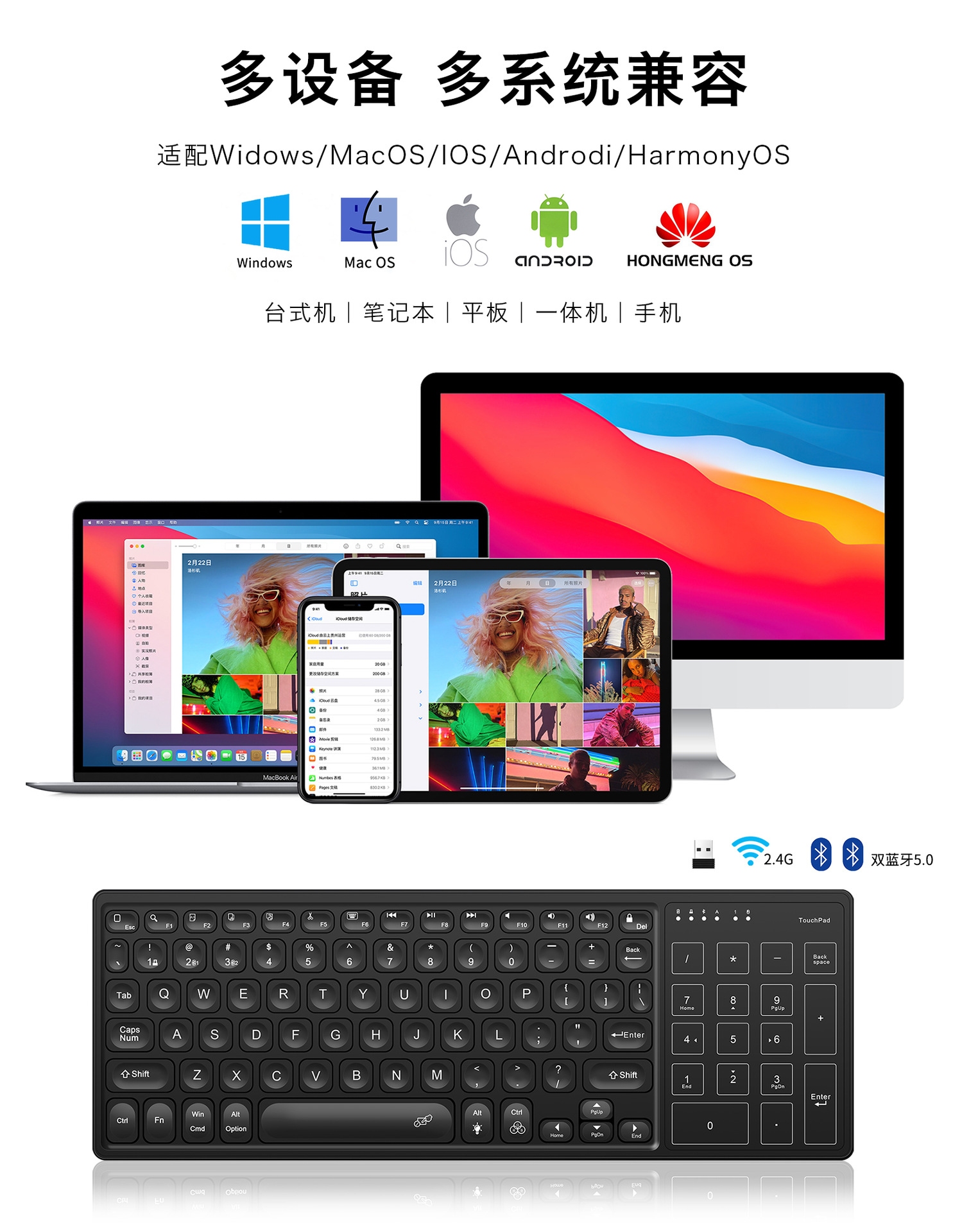 3.触摸数字+鼠标2合1多手势大触控板,左右下压键