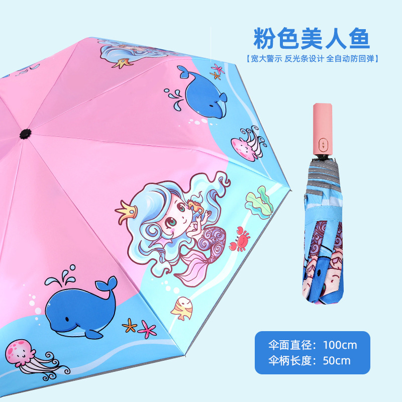 여학생을위한 안전 반 반동 어린이 우산 학교 남학생을위한 초등학생 맑고 비가 오는 이중 사용 자동 우산 사용자 지정스토어 가기