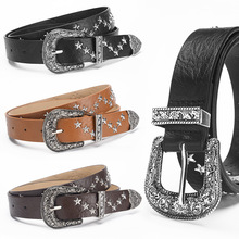 엄선된 한국 스타일 중공 펑크 캐주얼 벨트 여성 패션 스타 에어 아이 장식 더블 행 벨트 여성