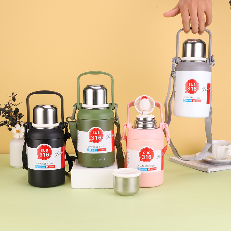 창조적 인 316 식품 학년 스테인레스 스틸 진공 컵 야외 대용량 스포츠 주전자 학생 휴대용 남성 등반 냄비