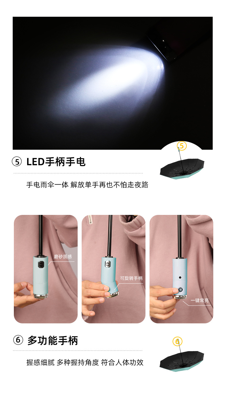 자동 비즈니스 남성 접이식 우산 여성 대형 손전등 조명 LED 램프 우산 태양 보호 차양 우산스토어 가기