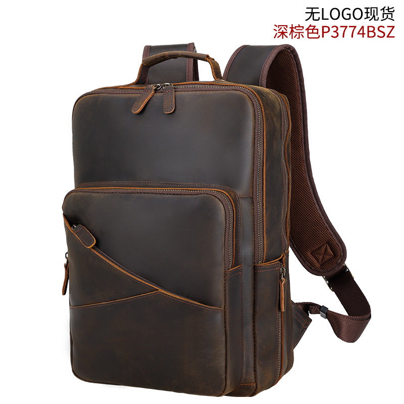 유행 암소 새로운 정품 가죽 배낭 남성용 빈티지 소가죽 컴퓨터 배낭 야외 레저 여행 배낭스토어 가기