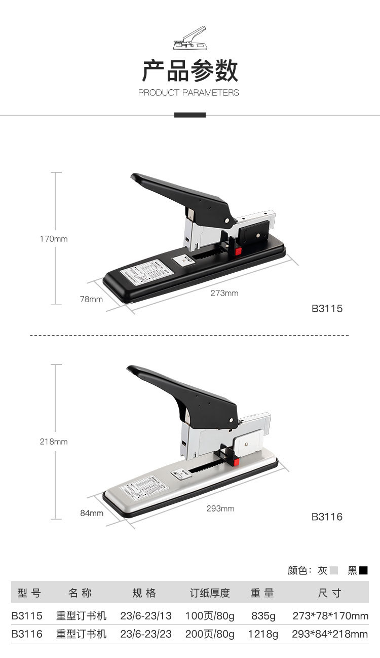 • B3116 무거운 스테이플러 200 페이지-블랙-1 세트