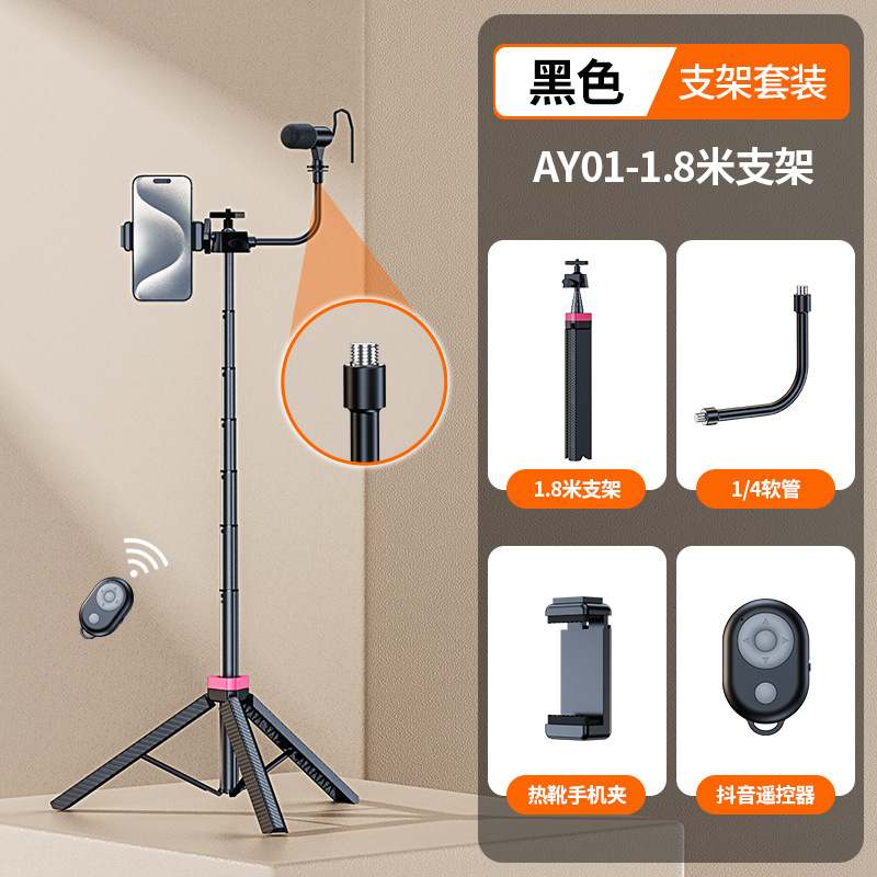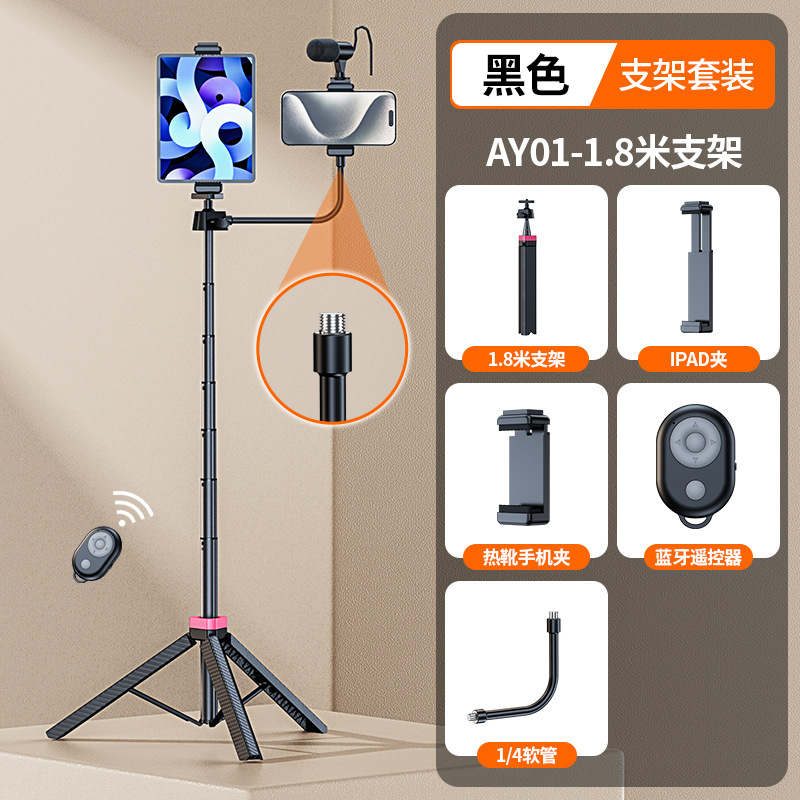• AY01S-1.8m 사진 브래킷 블랙 (표준 핫슈 휴대 전화 클립 + ipad 클립 + 호스 + TikTok Bluetooth)