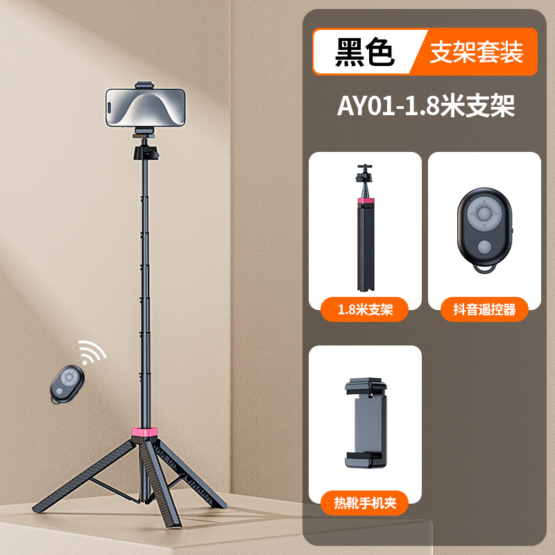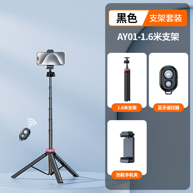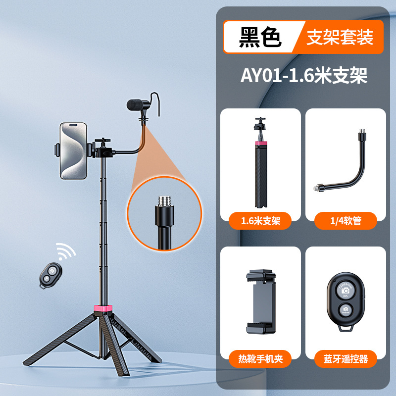 • AY01-1.6m 사진 브래킷 블랙 (표준 핫슈 휴대 전화 클립 + TikTok Bluetooth)