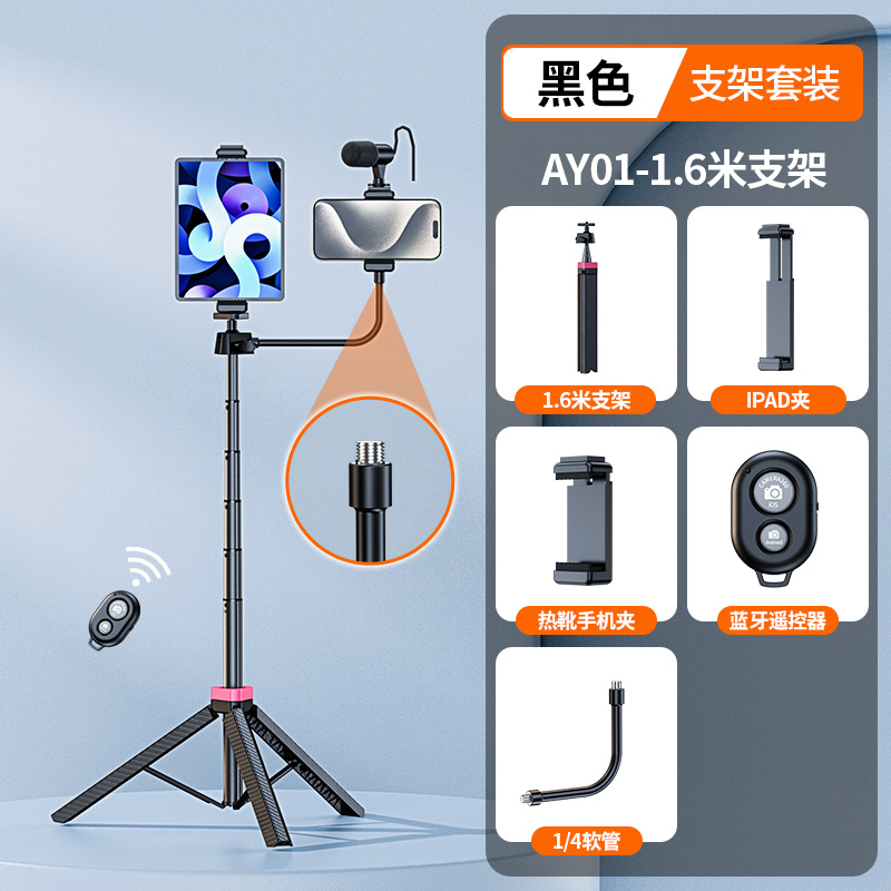 • AY01-1.6m 사진 브래킷 블랙 (표준 핫슈 휴대 전화 클립 + ipad 클립 + 호스 + TikTok Bluetooth)