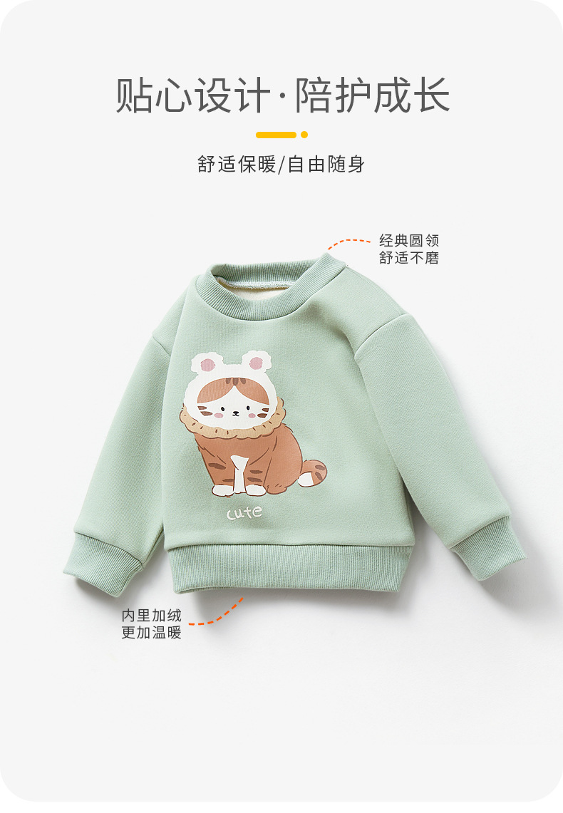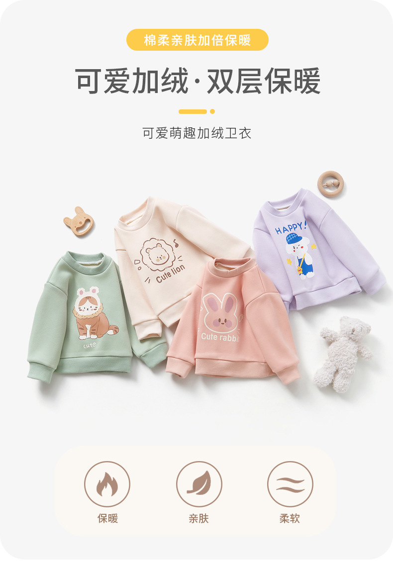 남아용 가을 겨울 이너웨어 보온 상의 봄 가을 얇은 벨벳 여아용 플리스 스웨트셔츠 일체형 벨벳 스타일리시 아기 코트스토어 가기