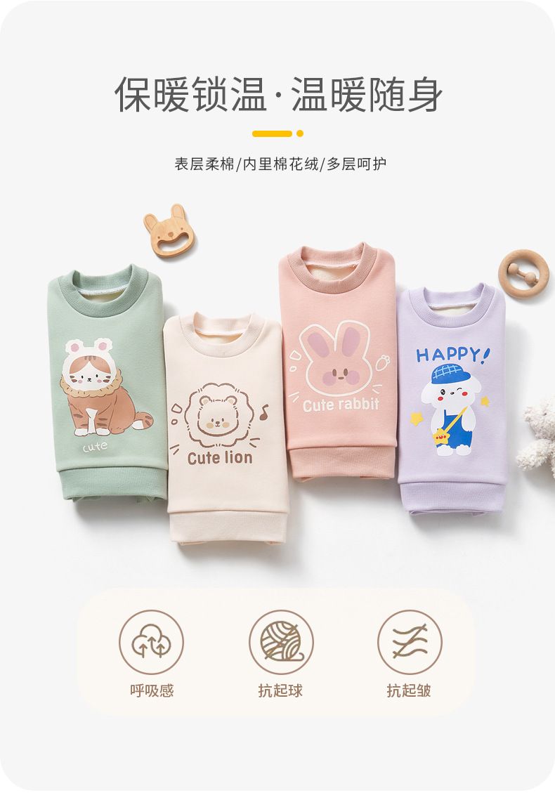 남아용 가을 겨울 이너웨어 보온 상의 봄 가을 얇은 벨벳 여아용 플리스 스웨트셔츠 일체형 벨벳 스타일리시 아기 코트