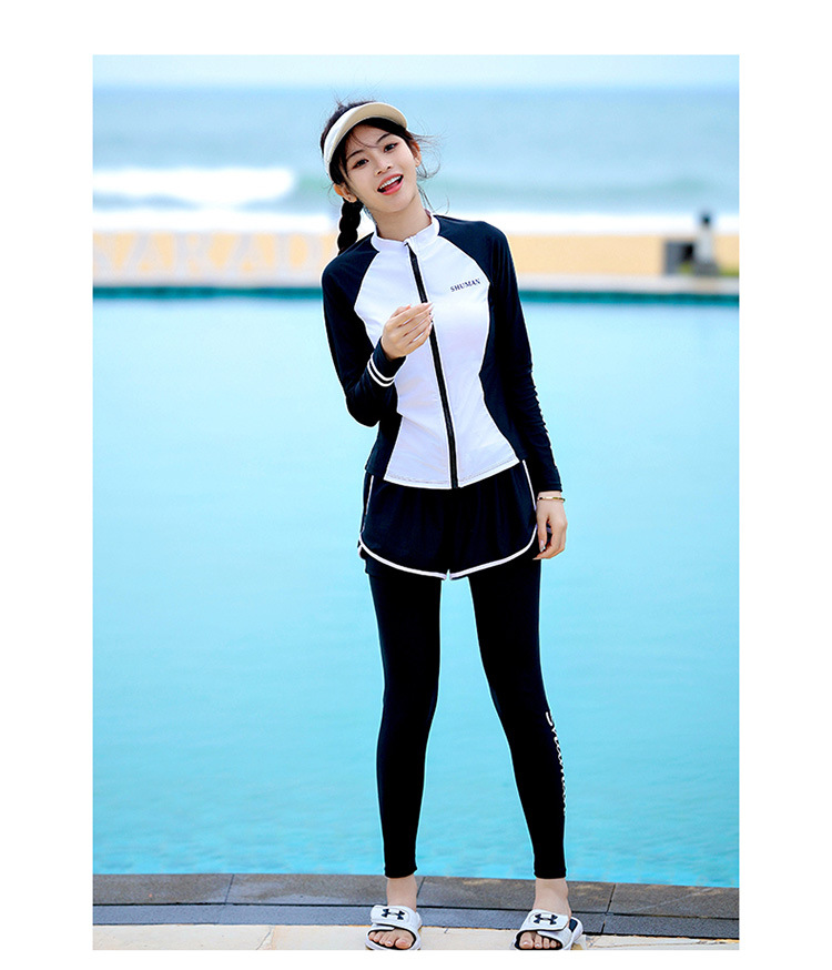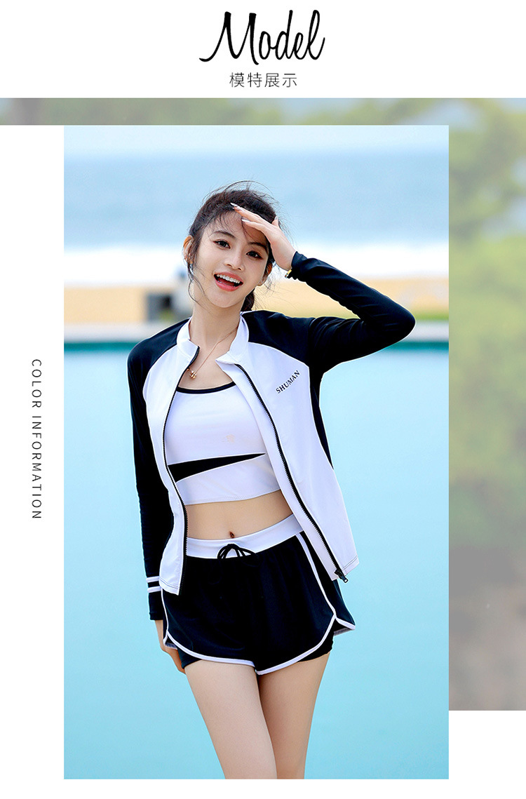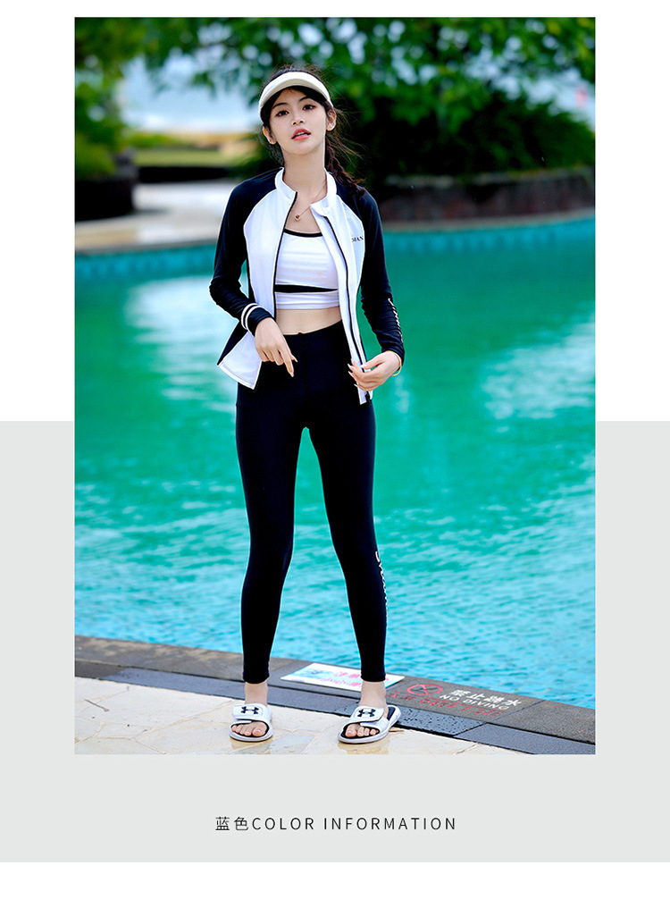 2024 새로운 보수적 슬리밍 배꼽 4 피스 긴팔 바지 태양 보호 서핑 원피스 수영복 다이빙 세트스토어 가기