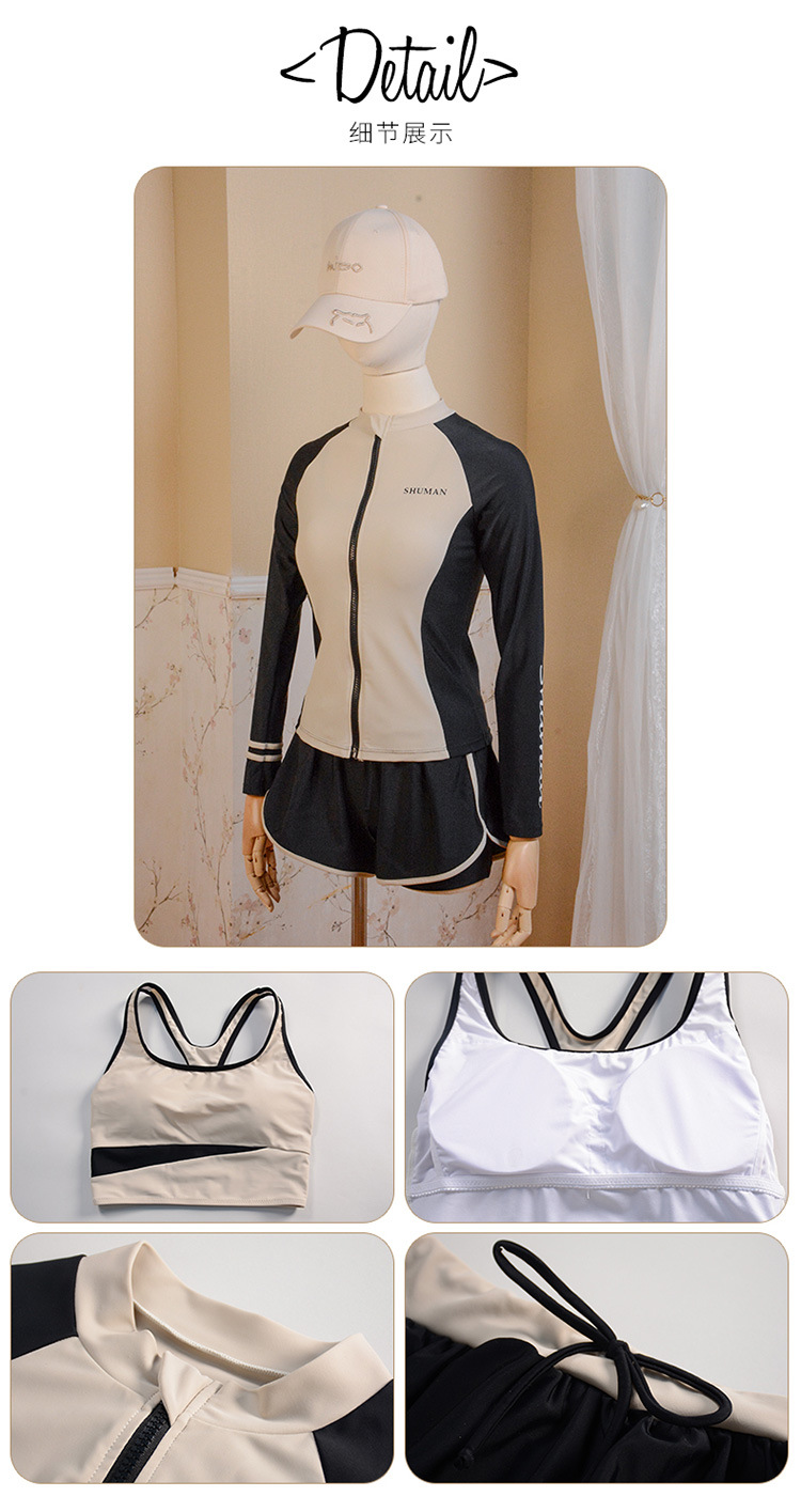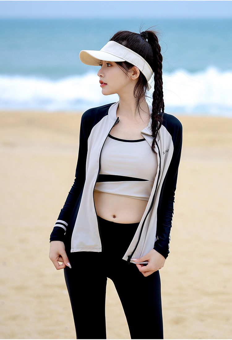 2024 새로운 보수적 슬리밍 배꼽 4 피스 긴팔 바지 태양 보호 서핑 원피스 수영복 다이빙 세트