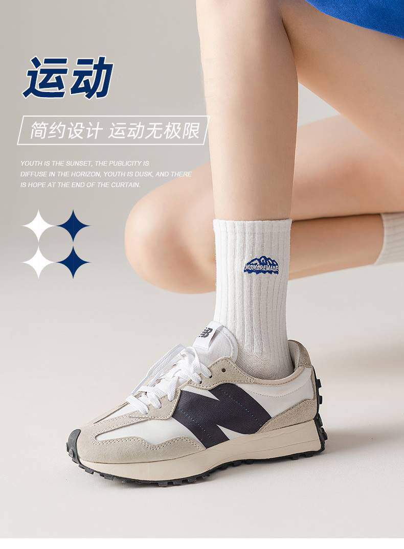袜子男士春秋款纯色中筒袜ins潮秋冬季防臭吸汗白色运动长筒长袜