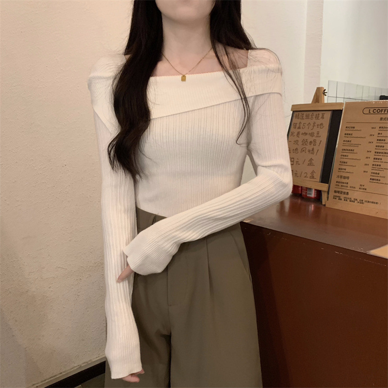 프랑스 스타일의 오프 숄더 스웨터 탑 여성의 가을과 겨울 디자인 기질 바닥 스웨터 내부 긴 소매 탑