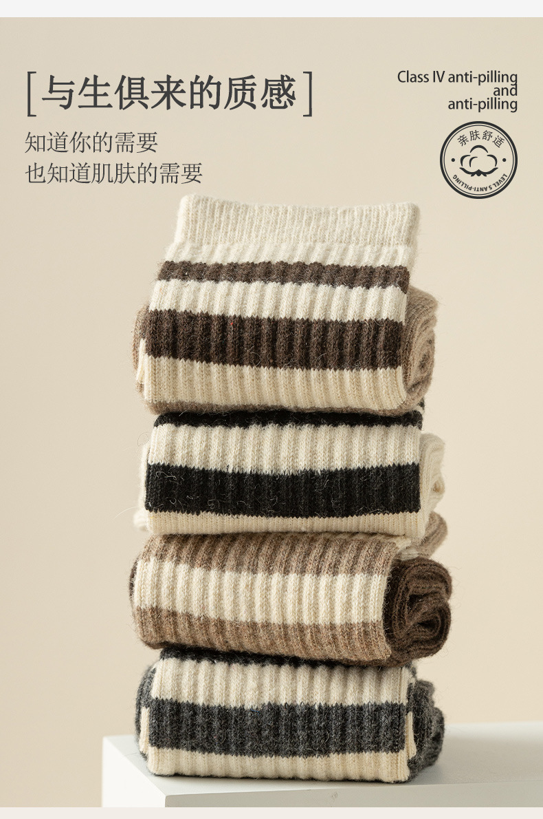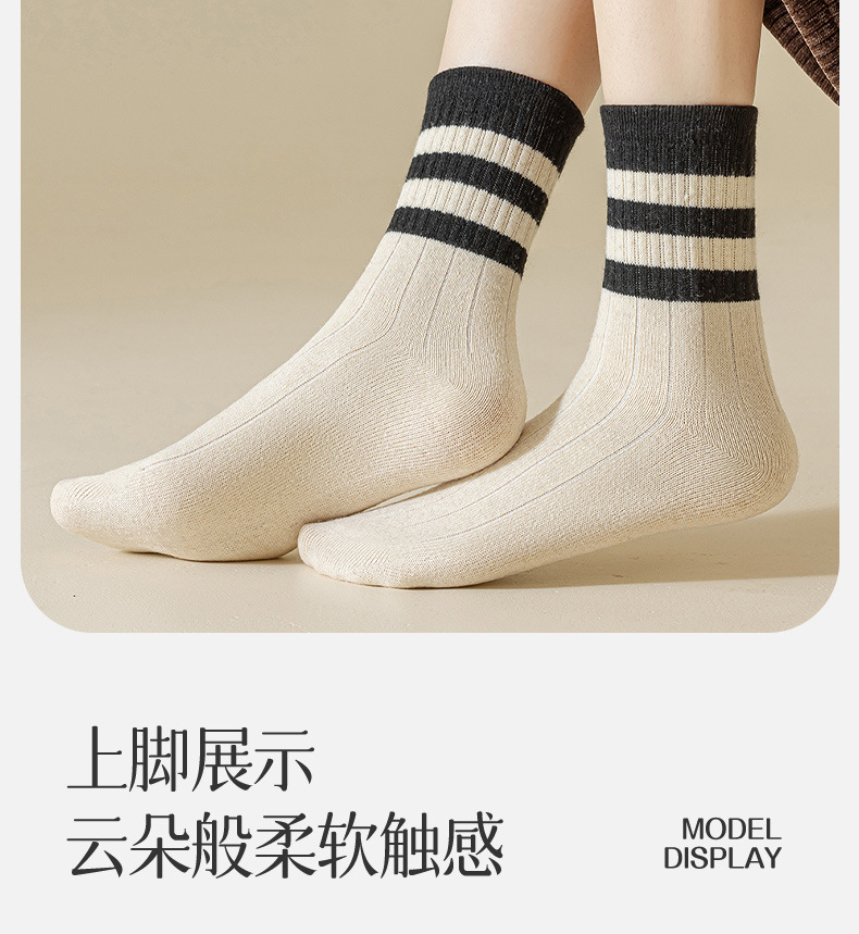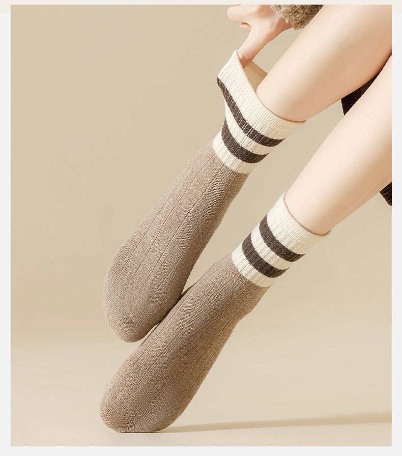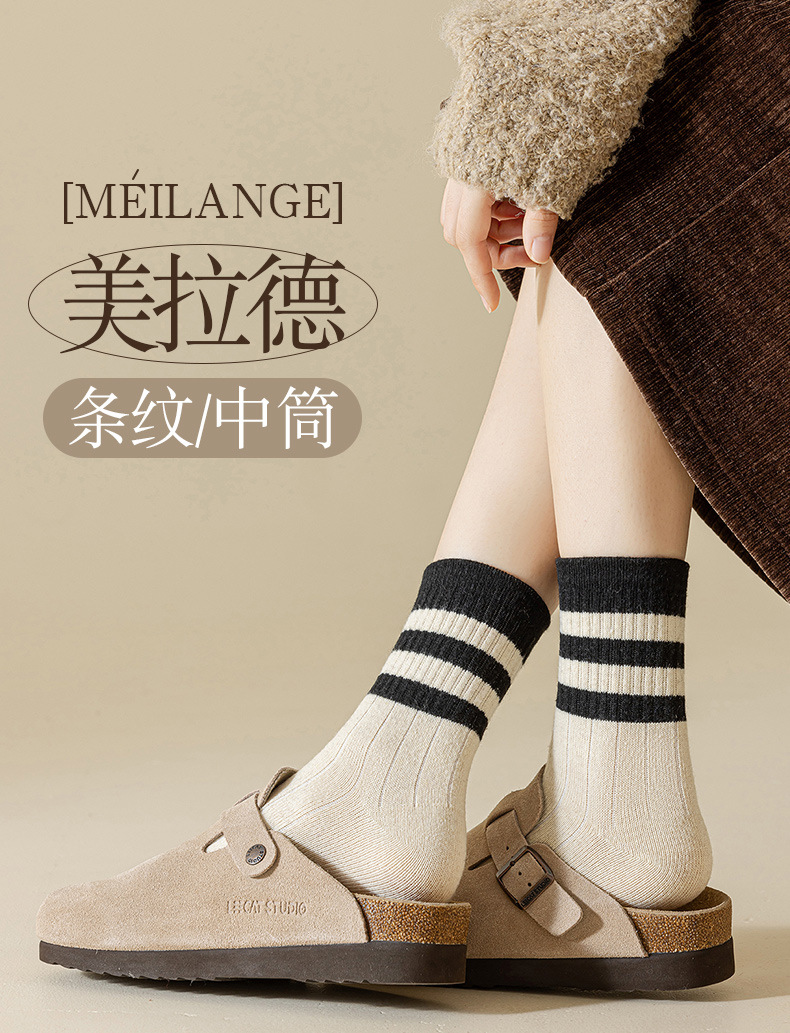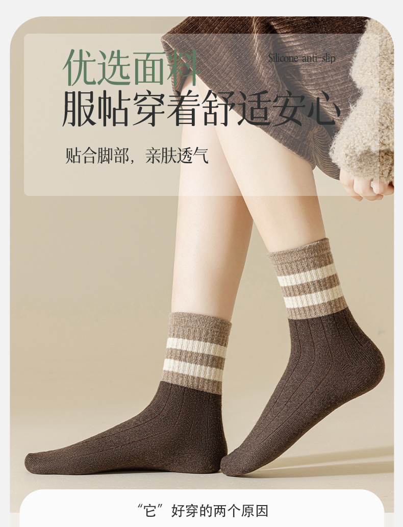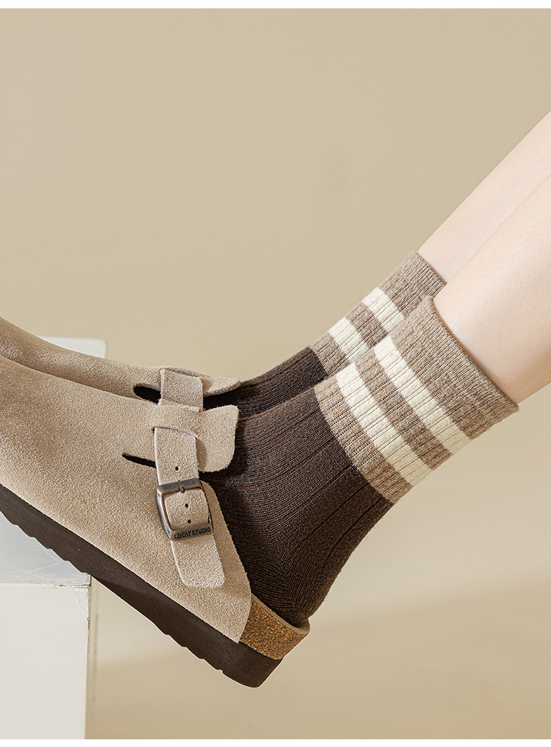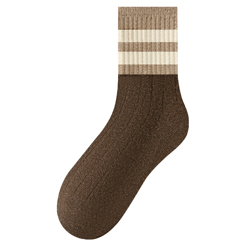 봄 새로운 줄무늬 여성 양말 다크 브라운 시리즈 중간 종아리 길이 양말 일본 간단한 프레피 스타일 스타킹면 Zhuji 양말스토어 가기