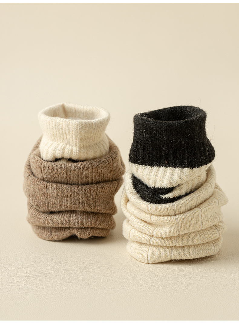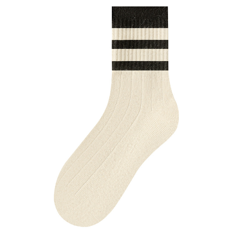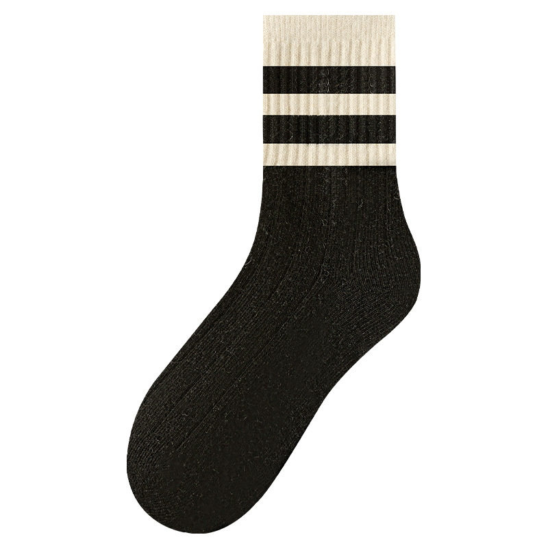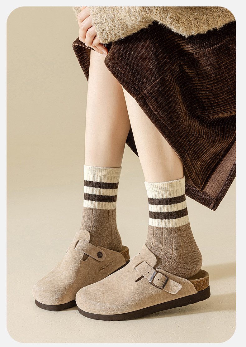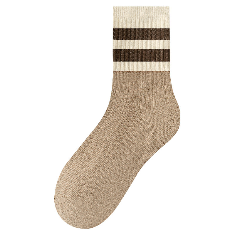 봄 새로운 줄무늬 여성 양말 다크 브라운 시리즈 중간 종아리 길이 양말 일본 간단한 프레피 스타일 스타킹면 Zhuji 양말