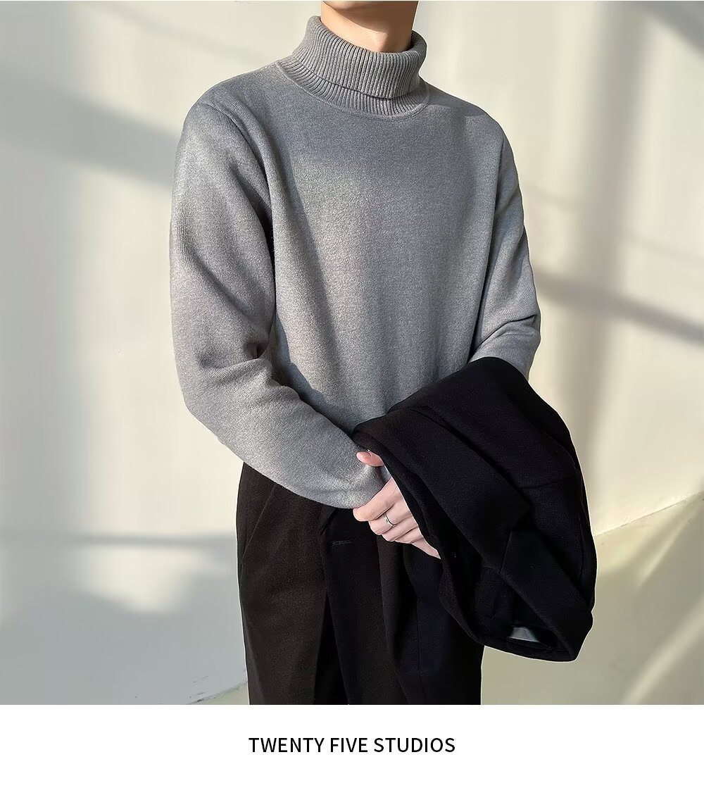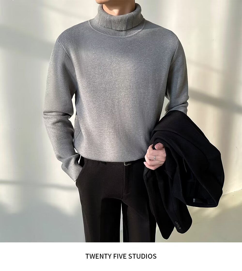 가을과 겨울 간단한 터틀넥 따뜻한 스웨터 남자 가벼운 성숙한 스웨터 슬림 핏 올 매치 스웨터 바닥 셔츠 남자스토어 가기