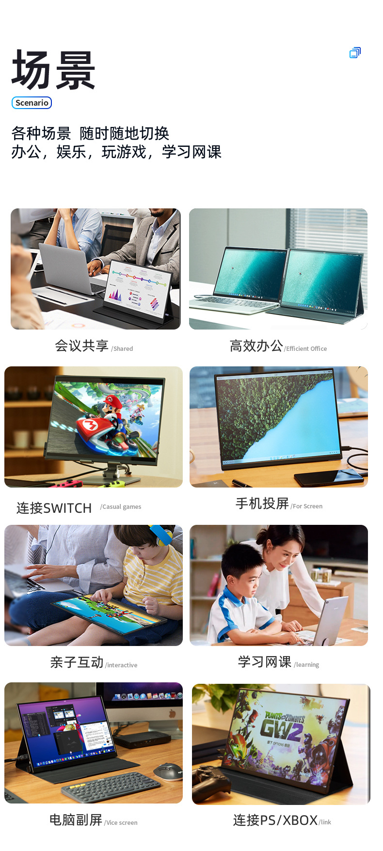 [맞춤형 처리] 14inch 휴대용 모니터 스위치/PS5/XBOX 확장 1080P 컴퓨터 보조 화면스토어 가기
