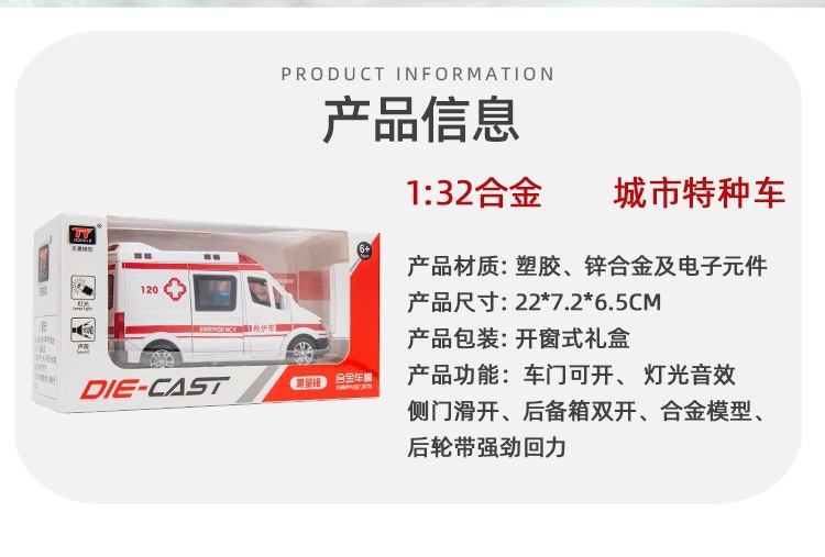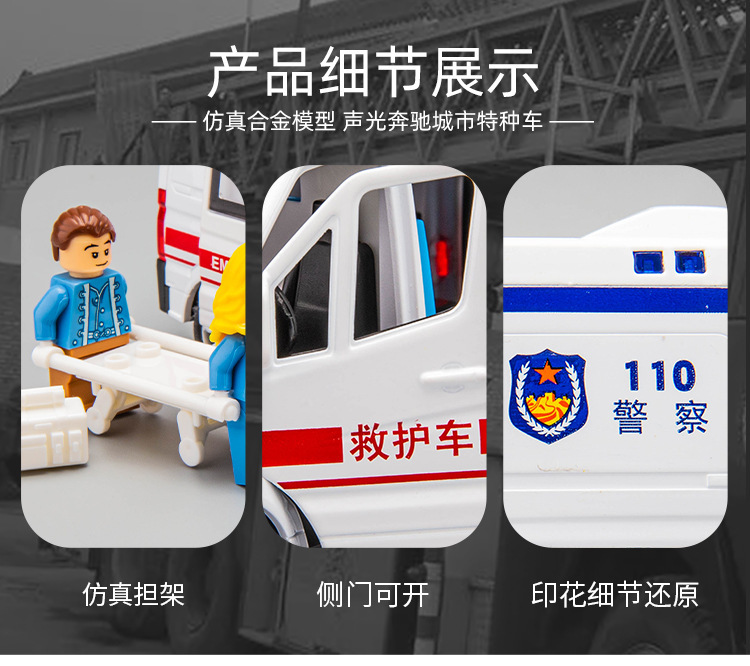 【商品名称】1:32大奔救护车、110警车、特警、消防车