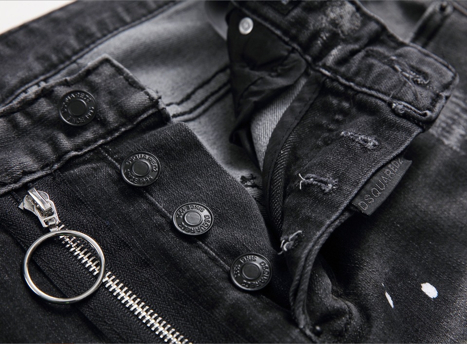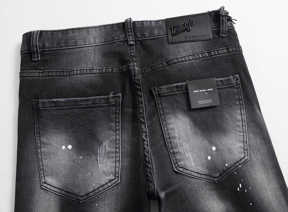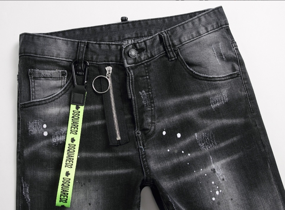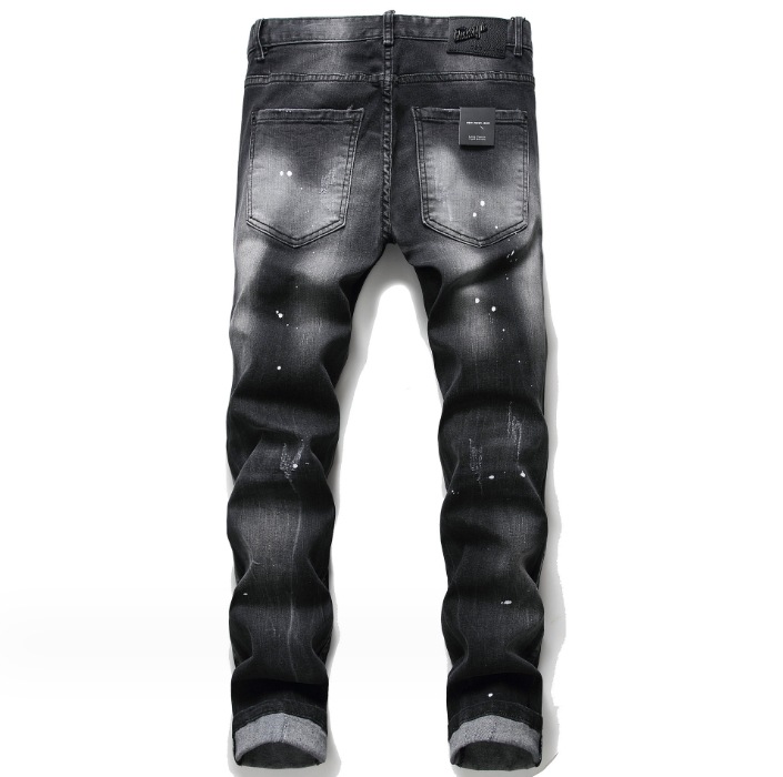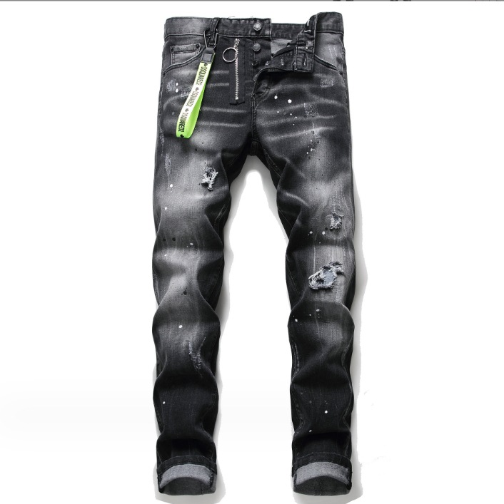 DSQ2 유럽과 미국의 찢어진 스플래시 페인트 남성용 청바지 슬림 핏 찢어진 헝겊 스트레치 D2 청바지 스키니 거지 바지스토어 가기