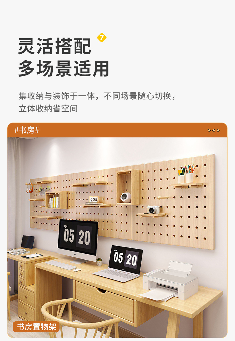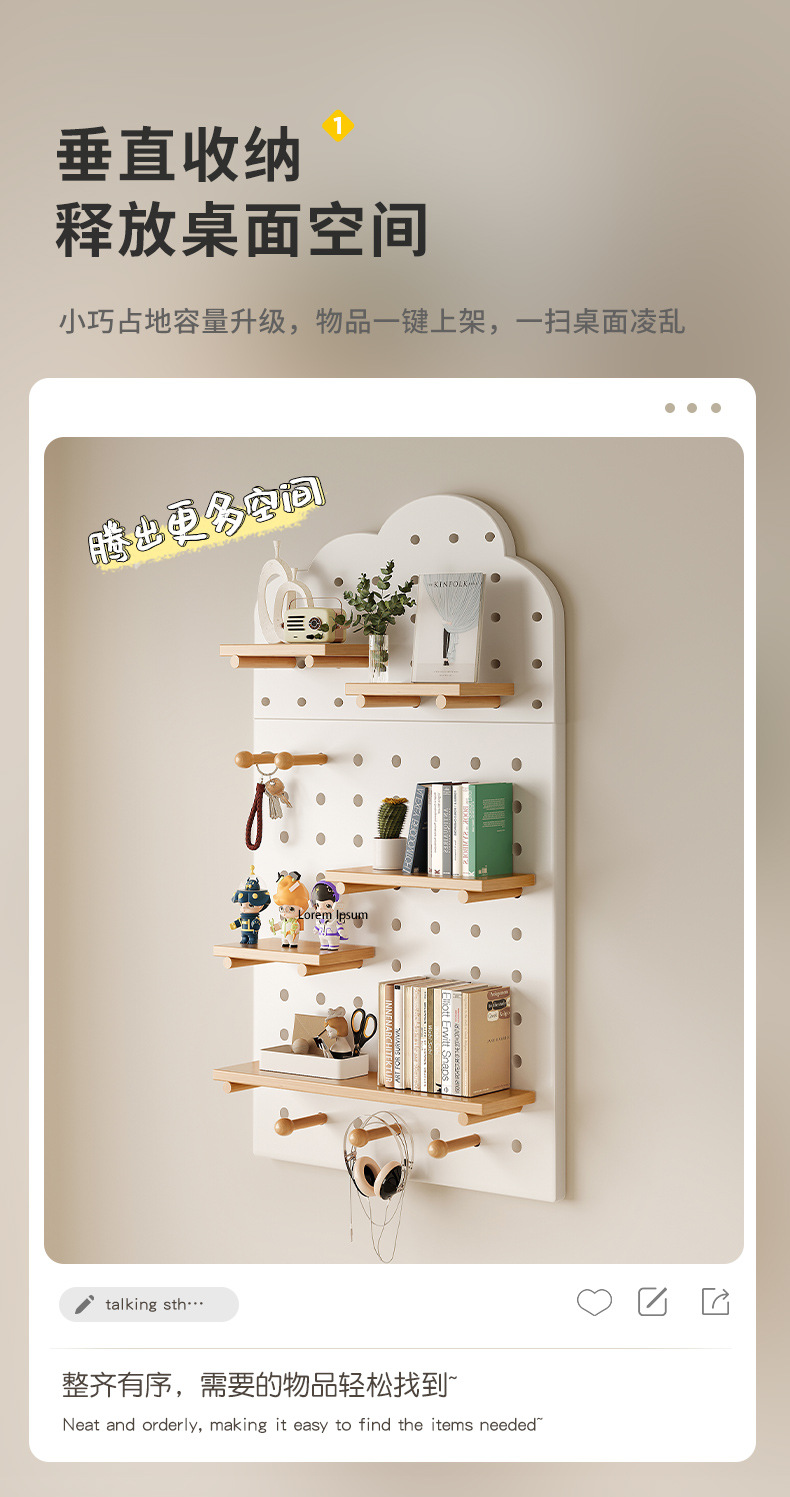 洞洞板墙上置物架挂板装饰搁板玄关学习桌背景墙展示架收纳整理架