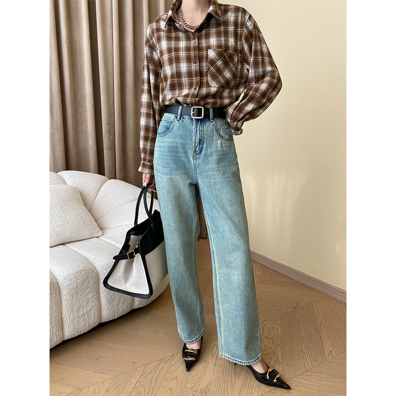 Sinan 영국 스타일의 면화 두꺼운 대비 색상 체크 무늬 캐주얼 느슨한 셔츠 스택 SN4902스토어 가기