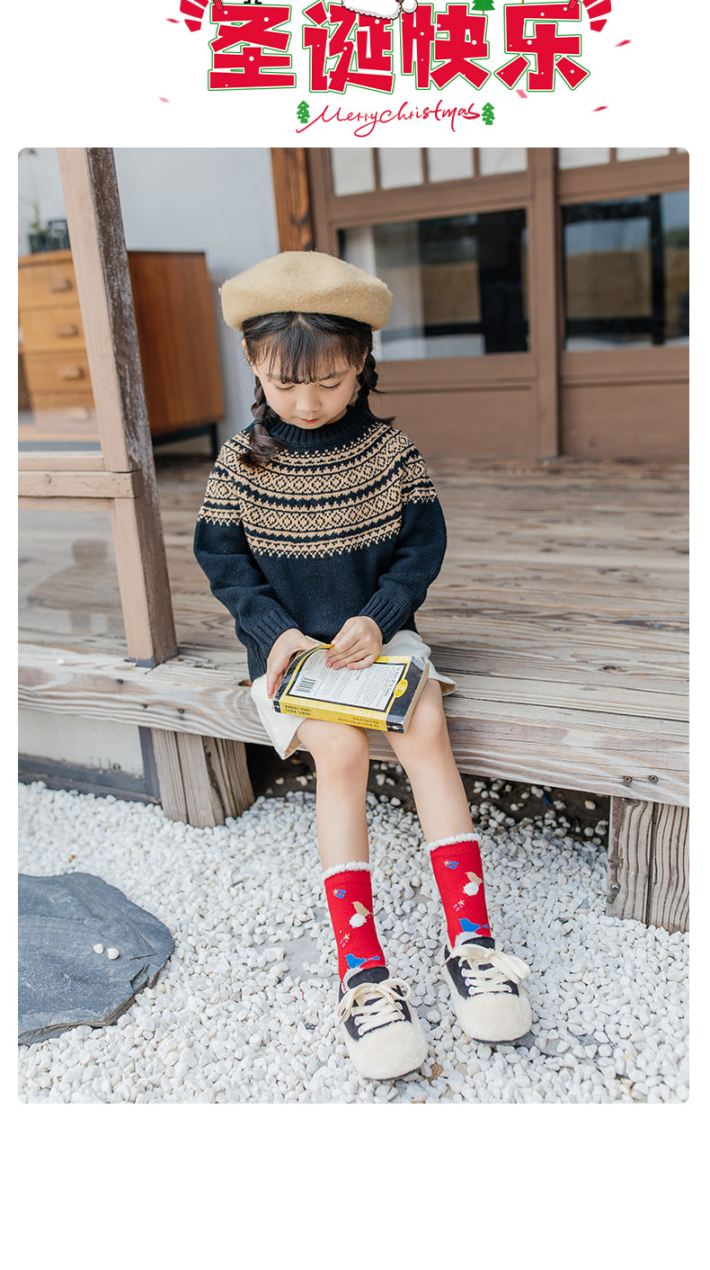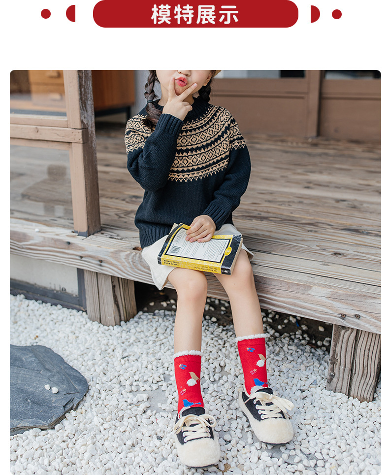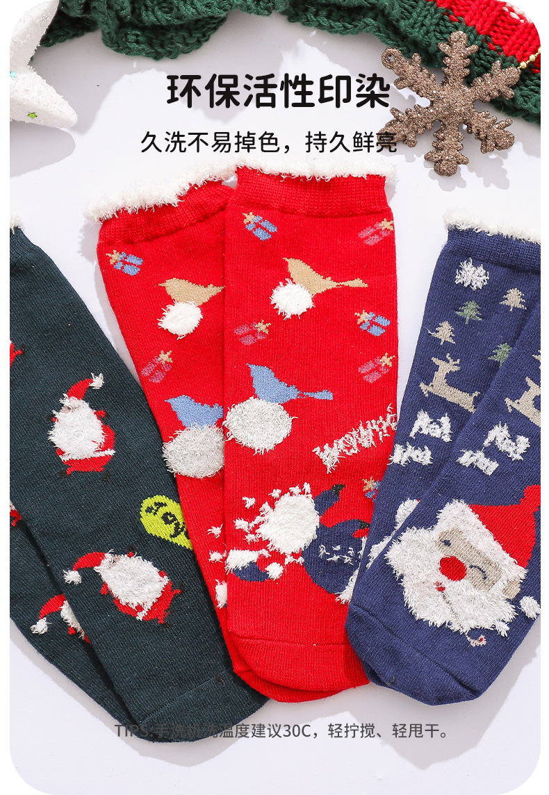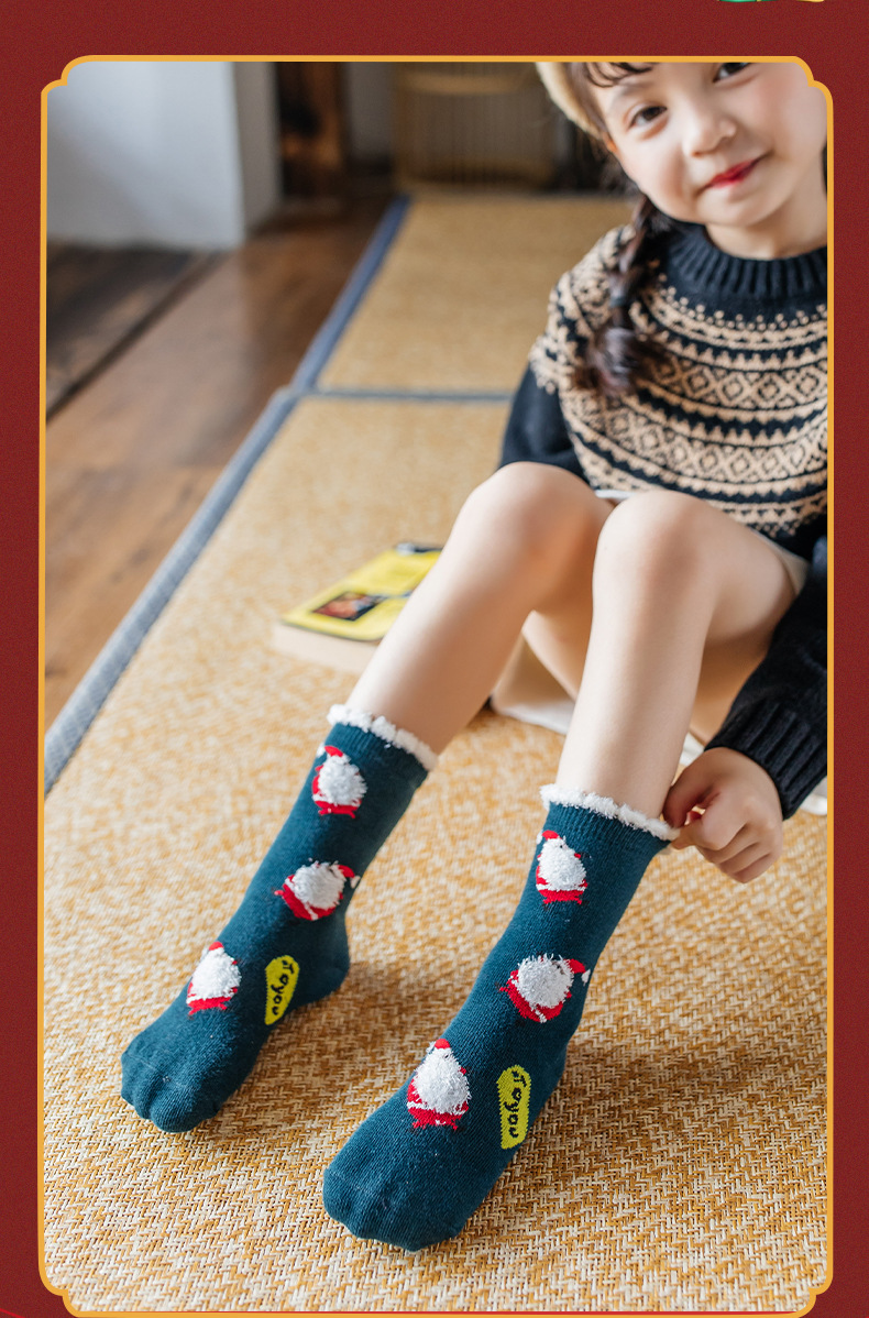 어린이 크리스마스 양말 가을과 겨울이 두껍게 된 중반 송아지 코튼 소년의 붉은 출생 아기 새해 소녀 스타킹 겨울