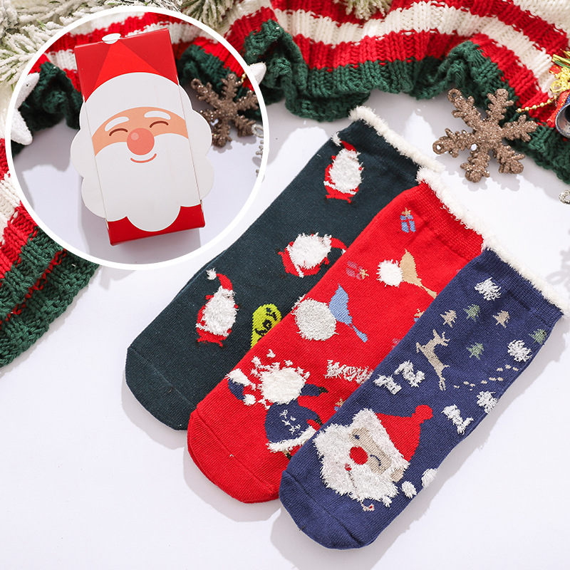 어린이 크리스마스 양말 가을과 겨울이 두껍게 된 중반 송아지 코튼 소년의 붉은 출생 아기 새해 소녀 스타킹 겨울스토어 가기