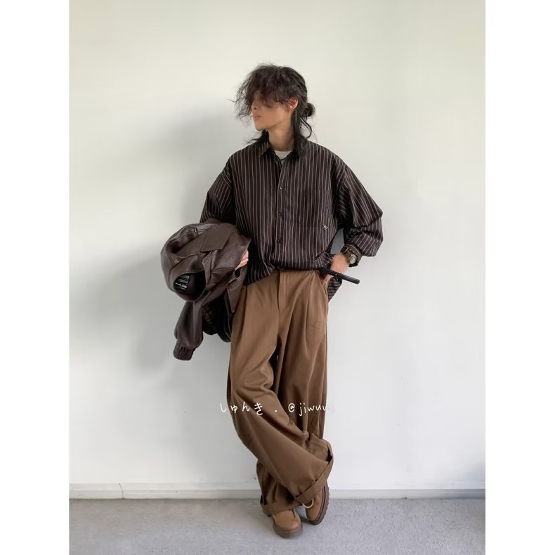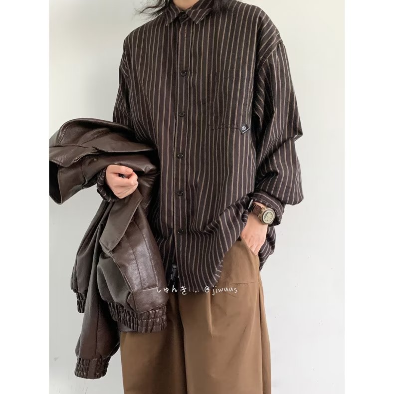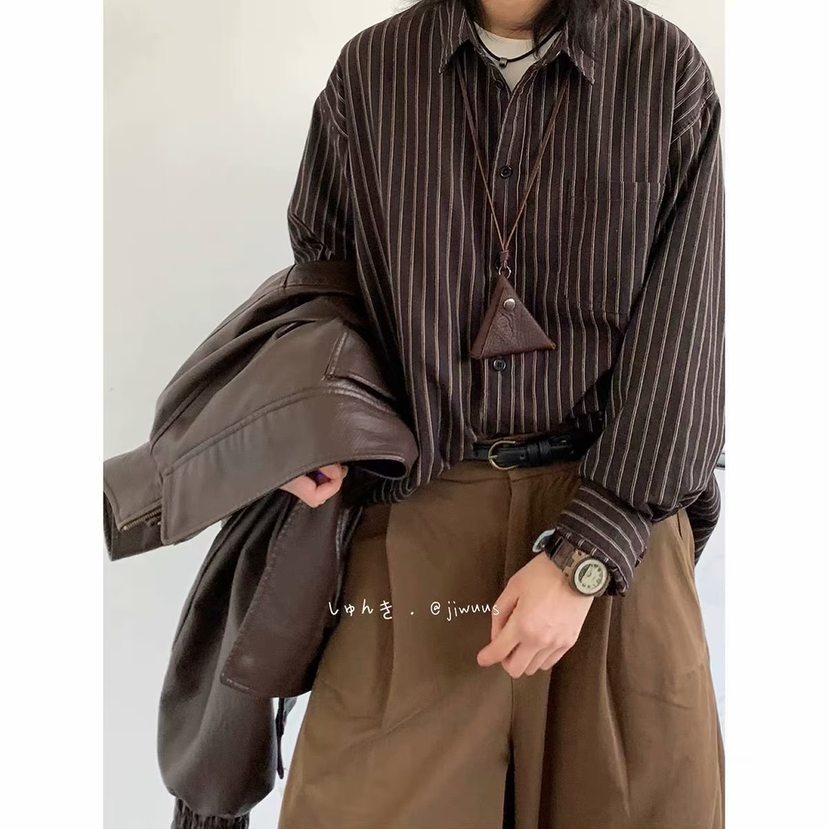 스트라이프 긴팔 셔츠 남성용 얇은 2024 봄과 가을 캐주얼 의류 트렌디 한 옷깃 디자인 셔츠스토어 가기