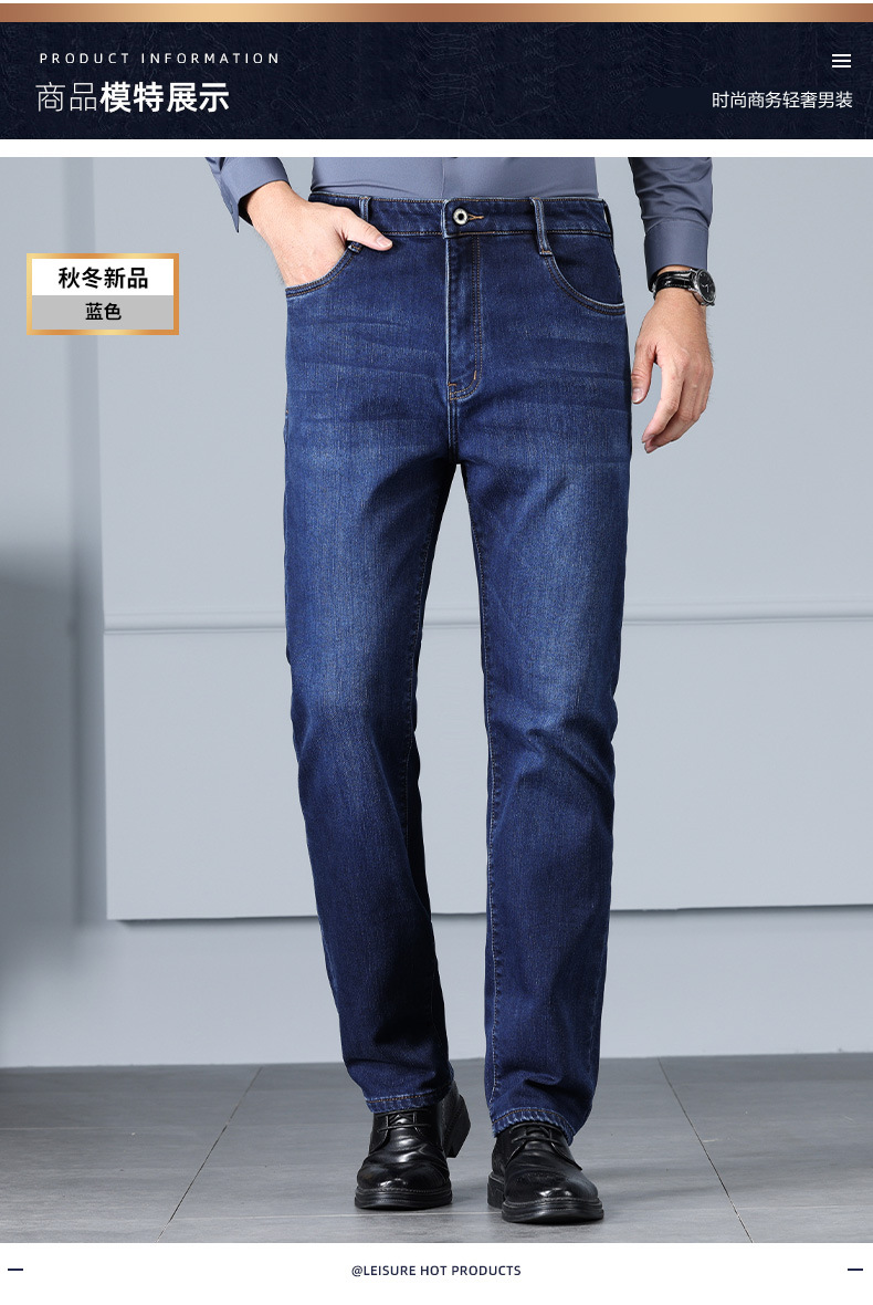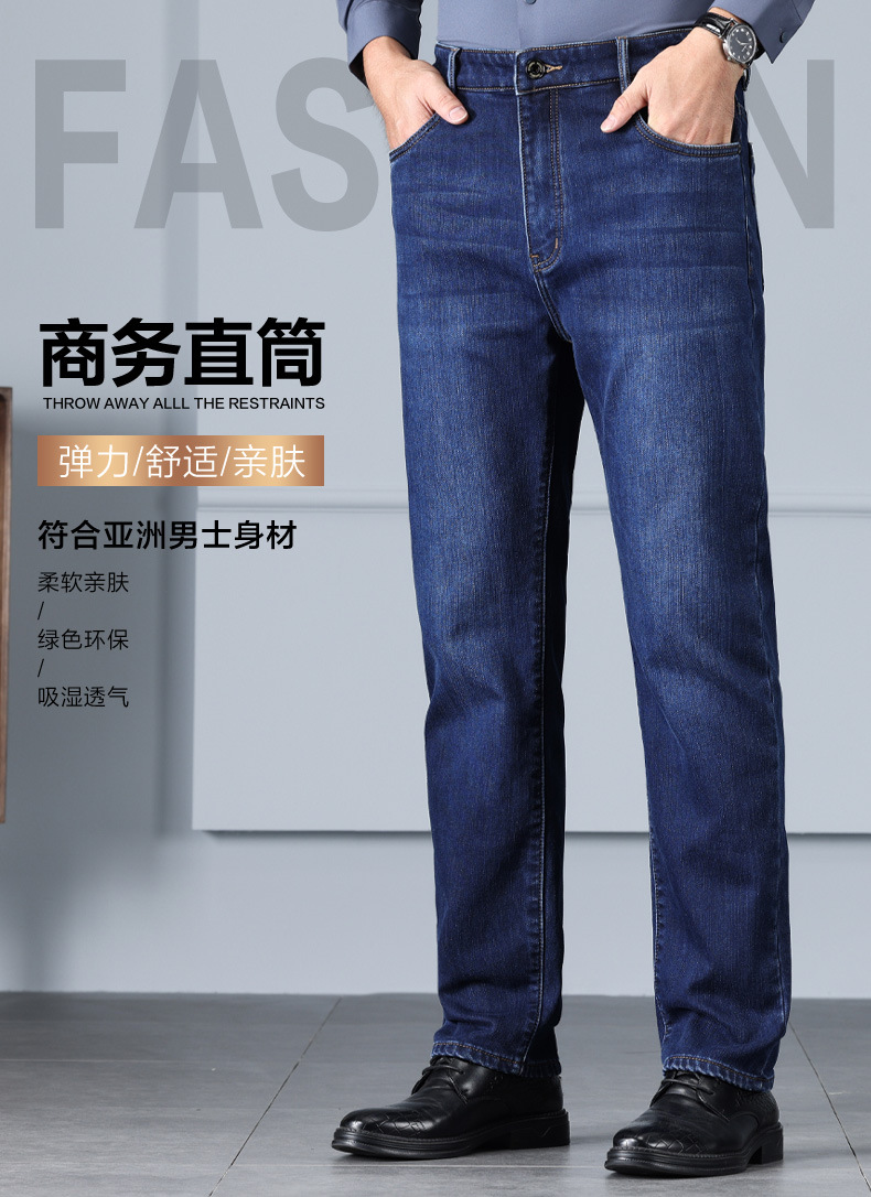 대형 느슨한 청바지 남성용 높은 허리 비즈니스 캐주얼 바지 남성용 봄과 가을 엘라스트 코튼 안티 주름 스트레이트 팬츠스토어 가기