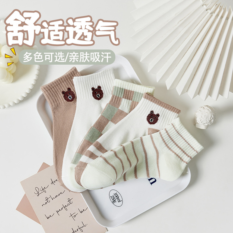 주지 양말 도매 지구 색 바둑판 곰 학생 색 조커 봄과 가을 시즌 낮은 짧은 튜브 보트 양말스토어 가기
