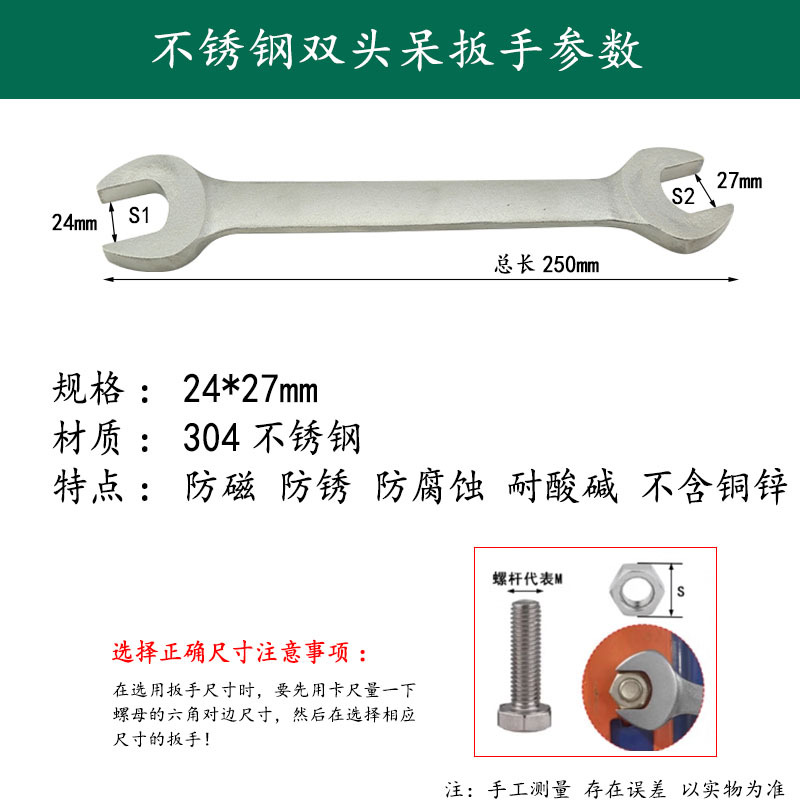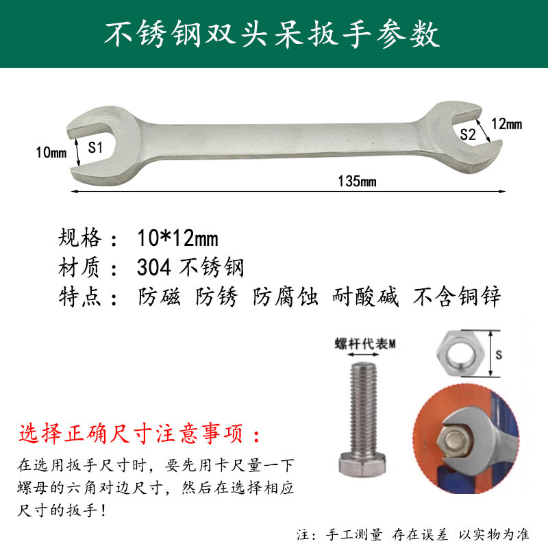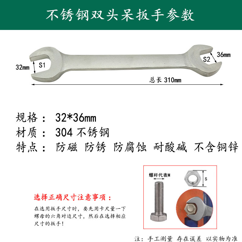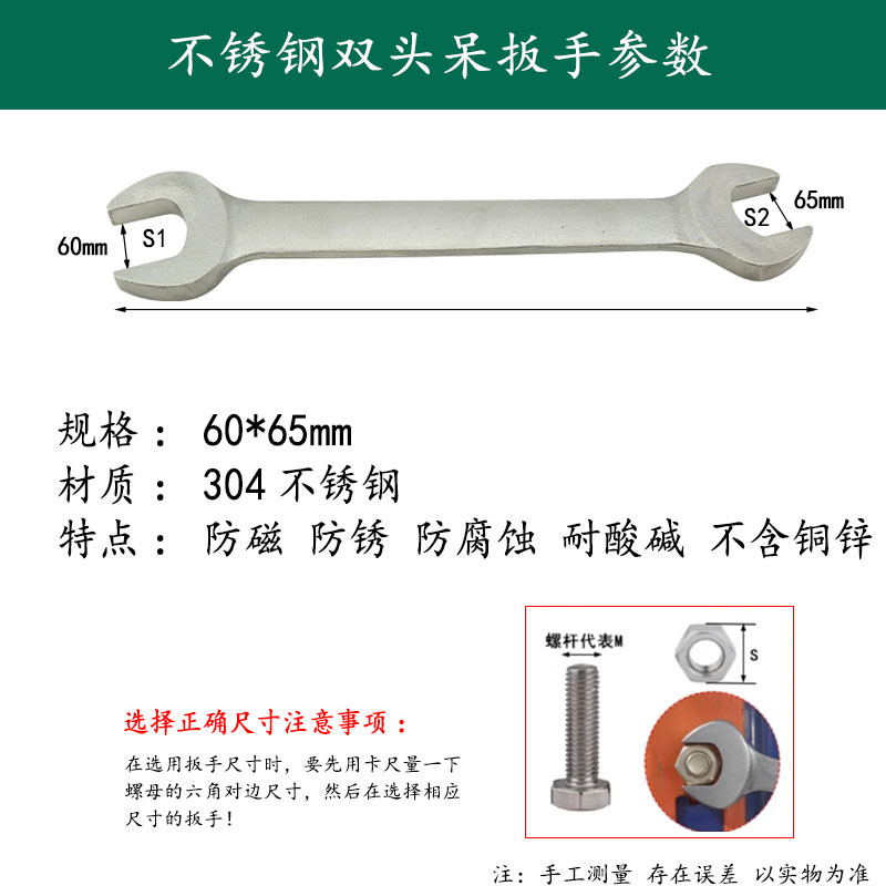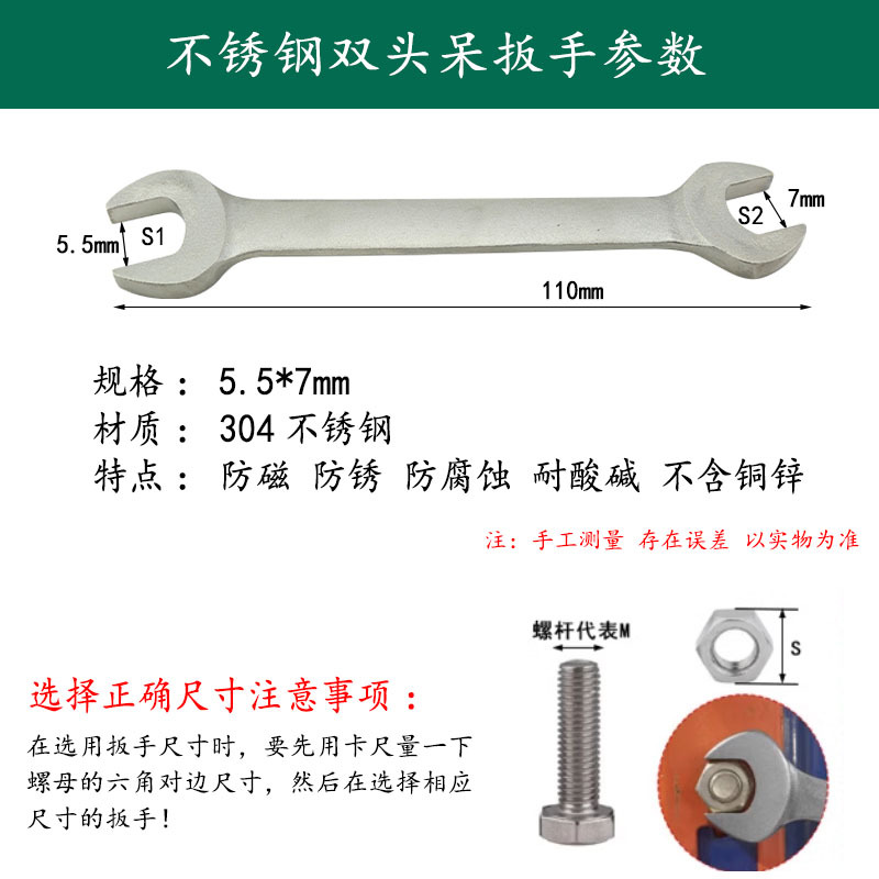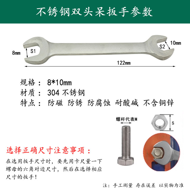 자기 방지 304 스테인리스 스틸 양면 렌치, 아연이나 구리가 포함되지 않으며 녹슬지 않는 포크 렌치, 양쪽 개방형 소켓 렌치