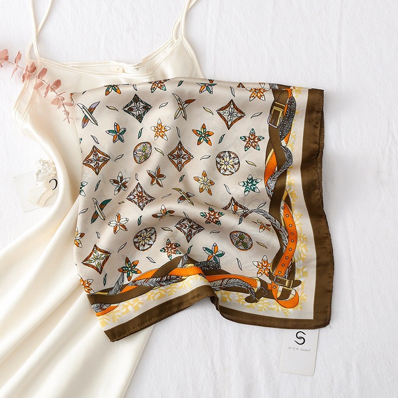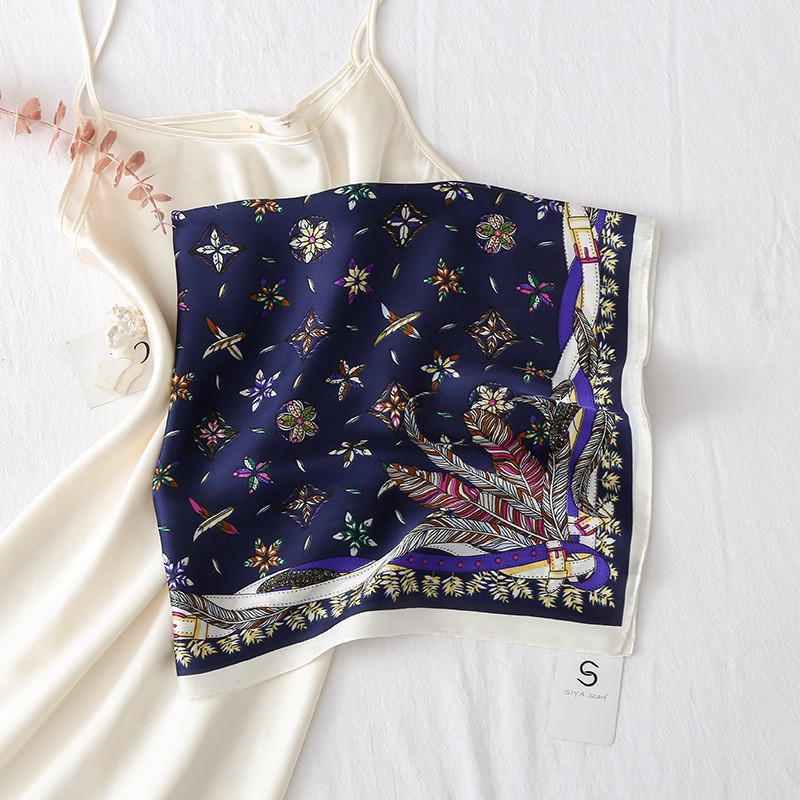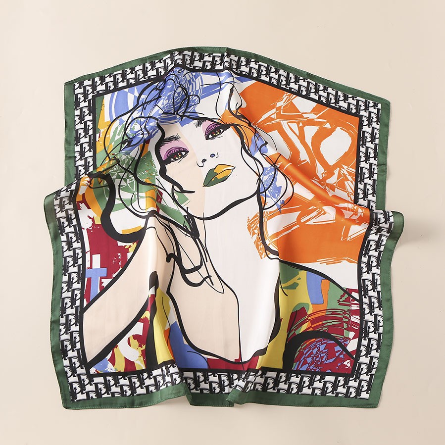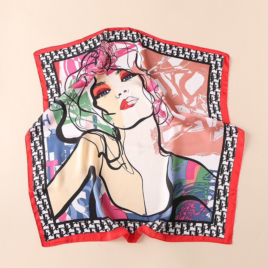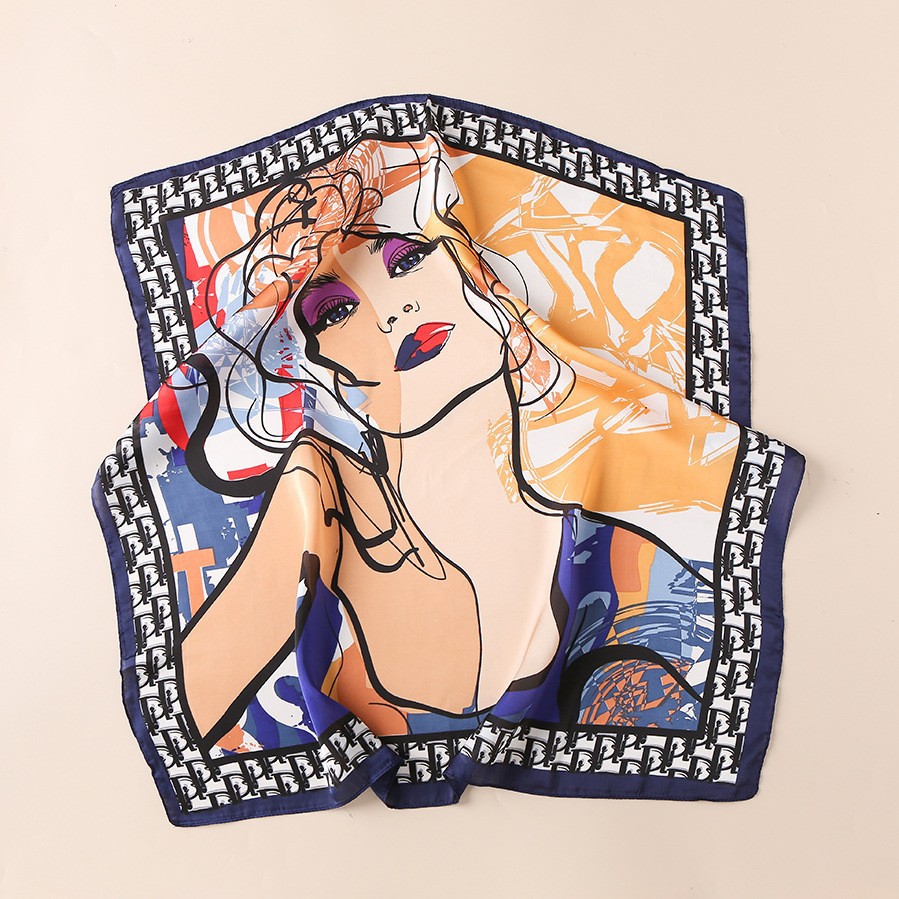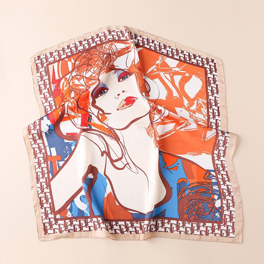 2023 패션 인공 실크 70cm 작은 사각형 스카프 여성 봄과 여름 한국 스타일 유화 스카프 올 매치 스카프 장식 스카프