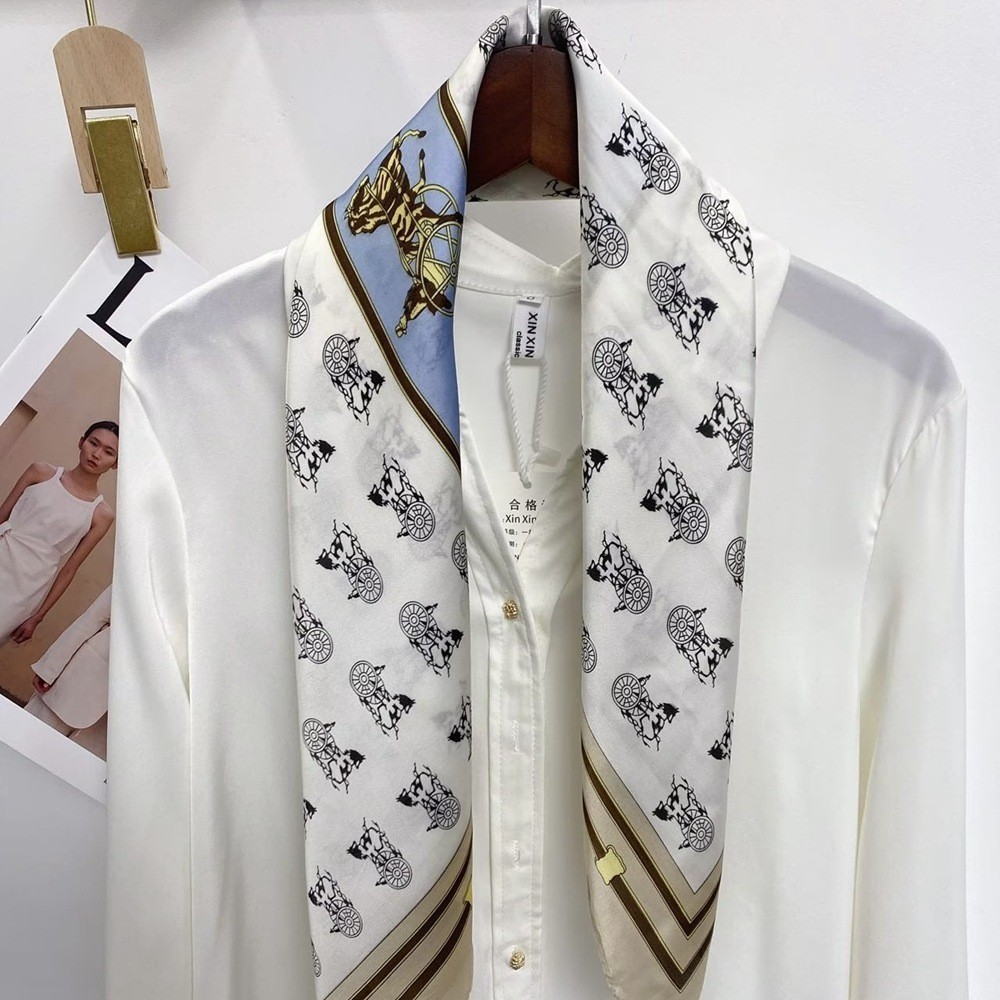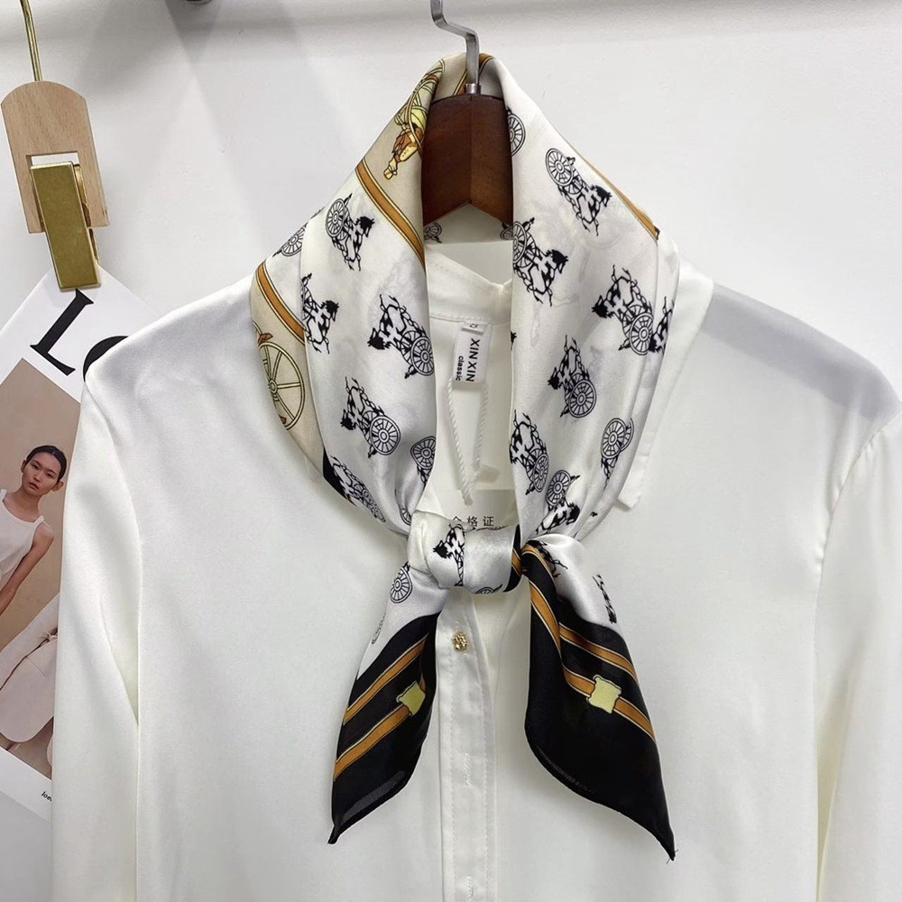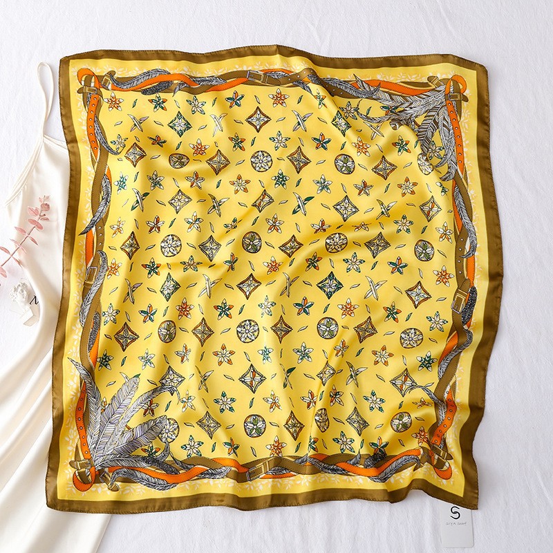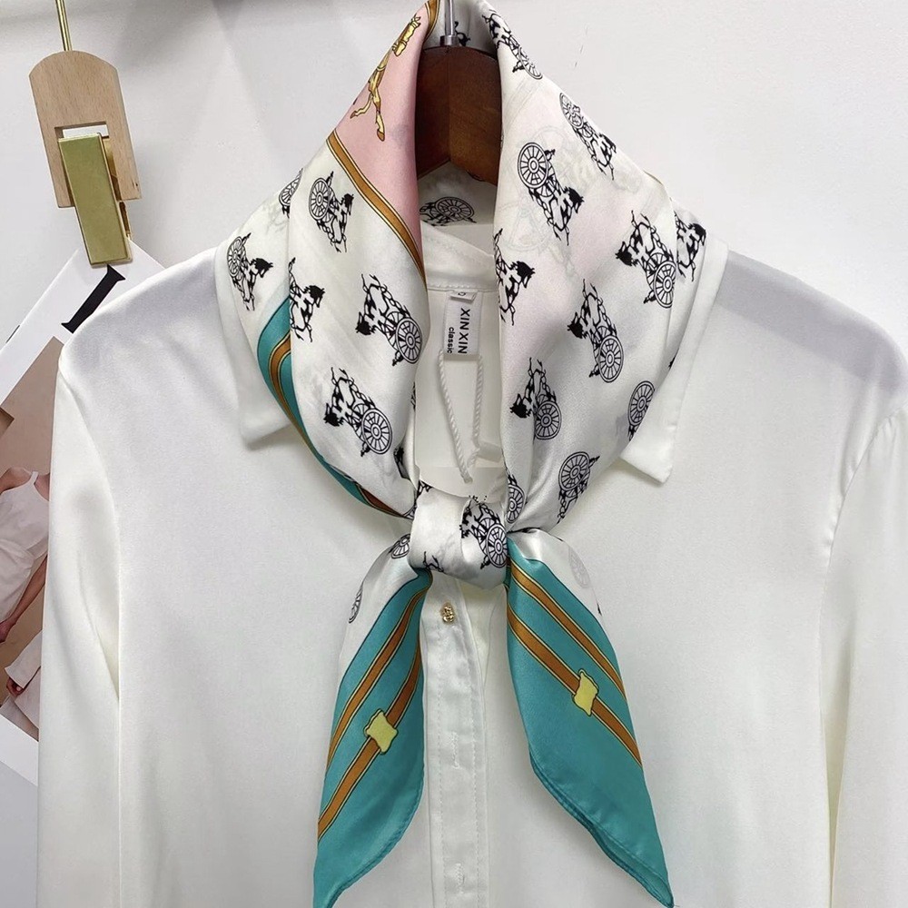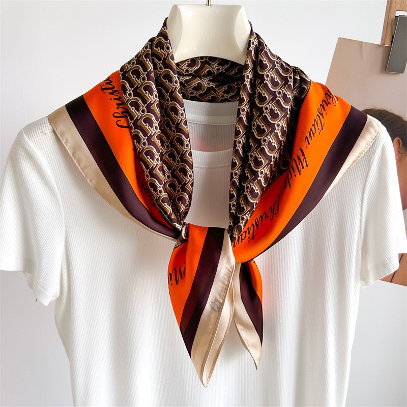 2023 패션 인공 실크 70cm 작은 사각형 스카프 여성 봄과 여름 한국 스타일 유화 스카프 올 매치 스카프 장식 스카프