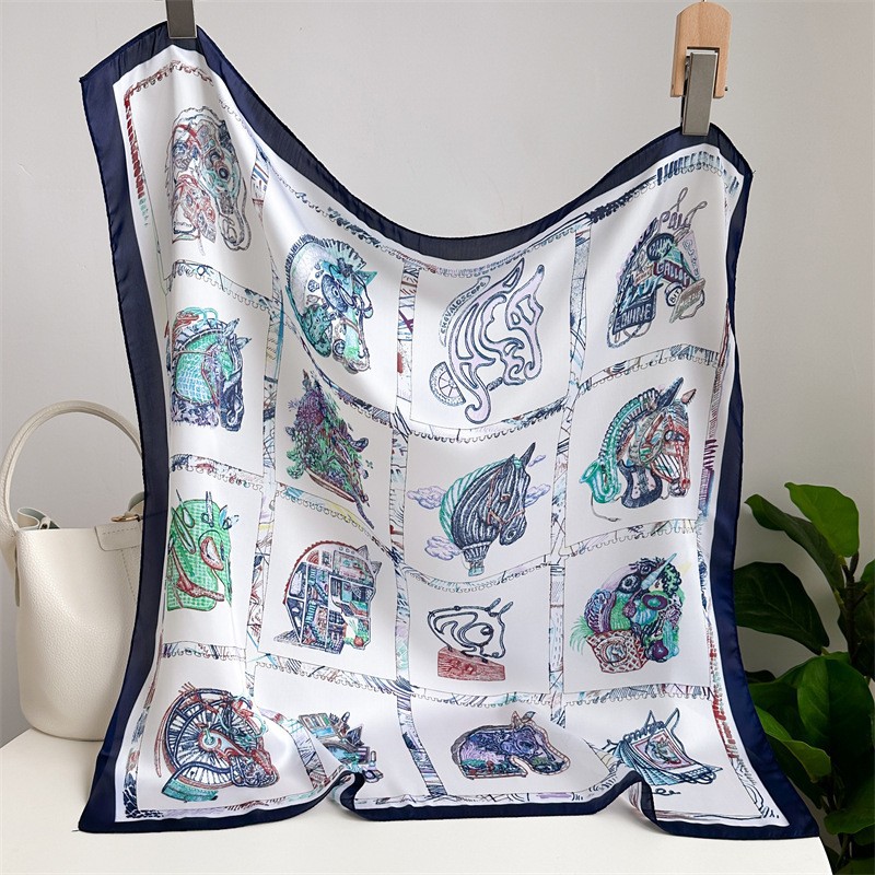 2023 패션 인공 실크 70cm 작은 사각형 스카프 여성 봄과 여름 한국 스타일 유화 스카프 올 매치 스카프 장식 스카프스토어 가기