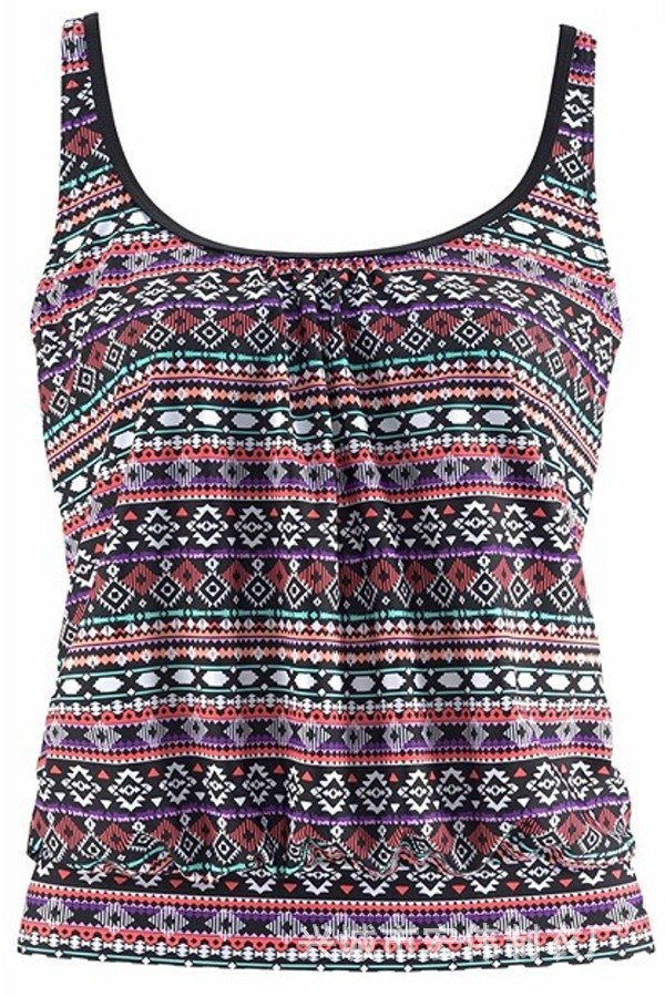 유럽과 미국의 새로운 Tankini 분할 수영복 여성의 배꼽 덮음 수영복 빈티지 인쇄 tankini 아마존