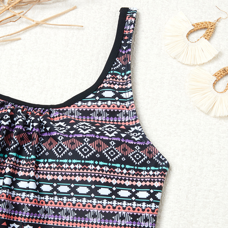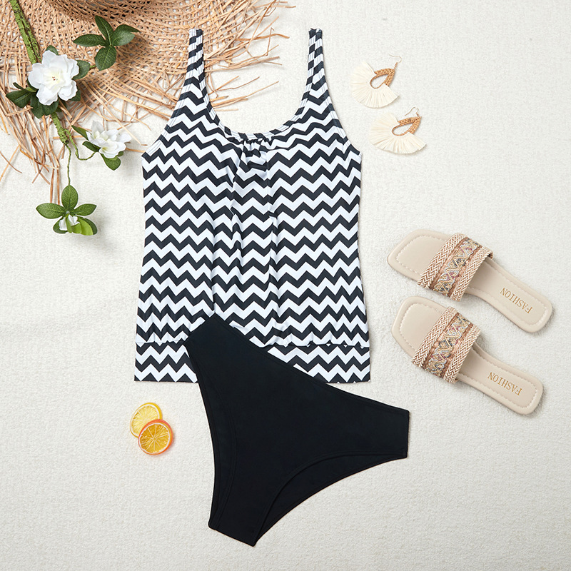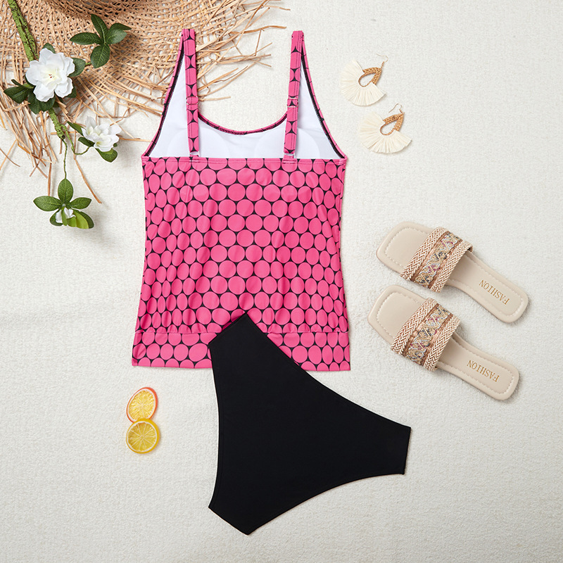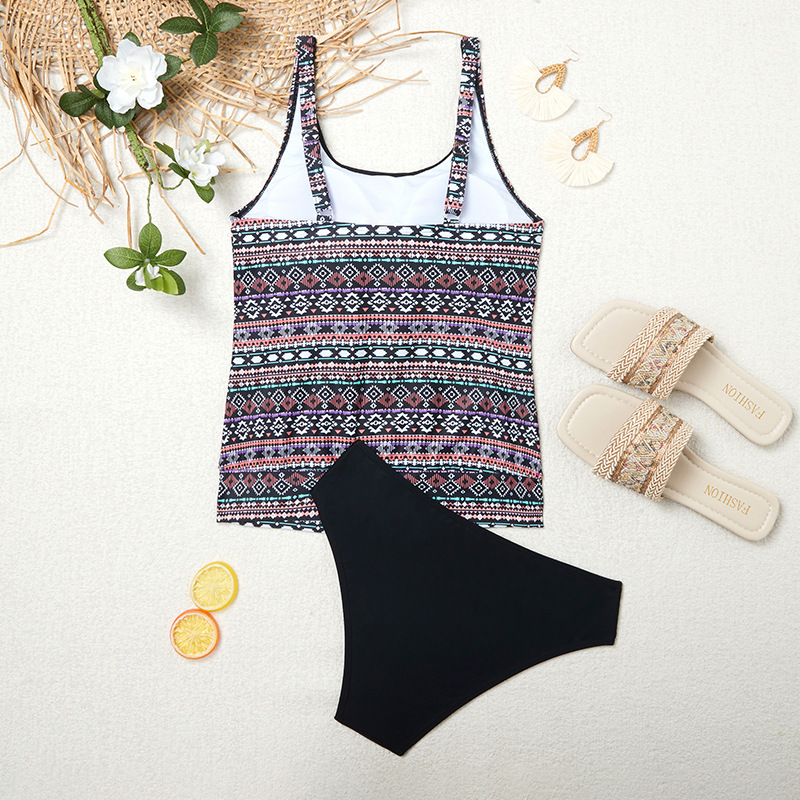 유럽과 미국의 새로운 Tankini 분할 수영복 여성의 배꼽 덮음 수영복 빈티지 인쇄 tankini 아마존스토어 가기