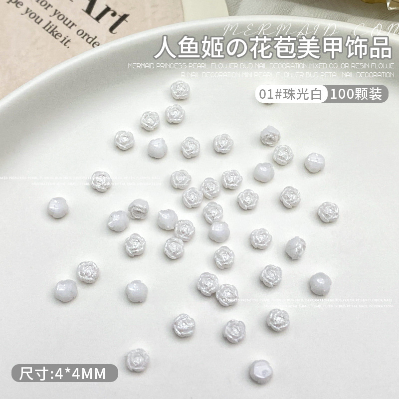 인어 지 꽃 봉오리 네일 쥬얼리 새로운 미니 동백 진주 화이트 핑크 보라색 작은 꽃 다이아몬드 그물 인기스토어 가기