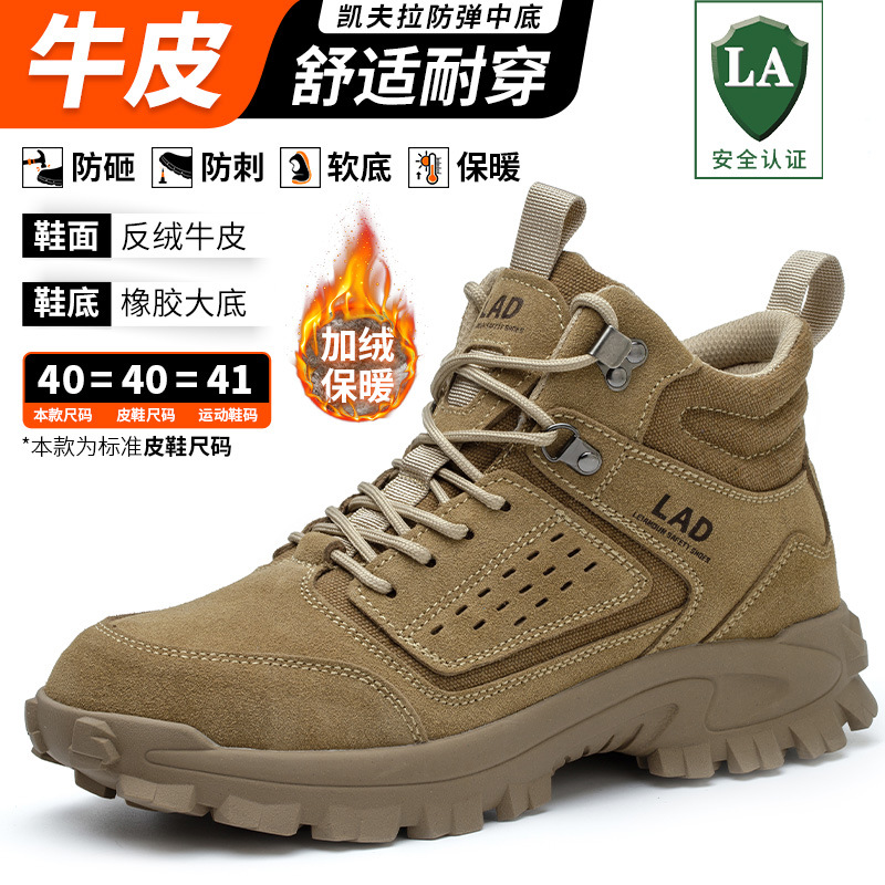 남성용 노동 보호 신발, 새로운 안티 스매싱 및 안티 펑크 여름 따뜻하고 내한성 플러스 벨벳 강철 발가락 건설 현장 노동 보호 작업 면화