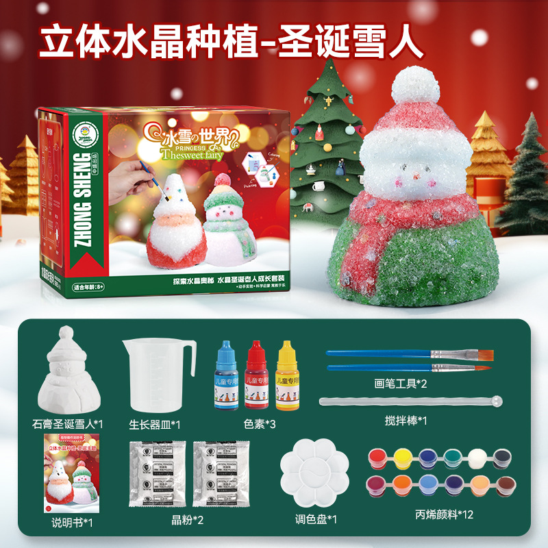 크리스털 무지개 크리스마스 장난감 수제 장식품 세트 어린이 심기 크리스탈 크리스마스 눈사람 과학 실험스토어 가기