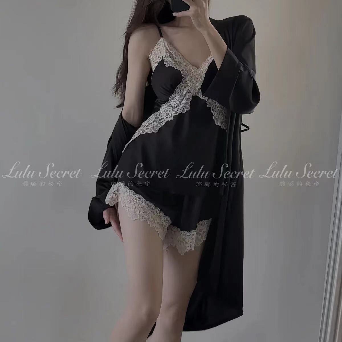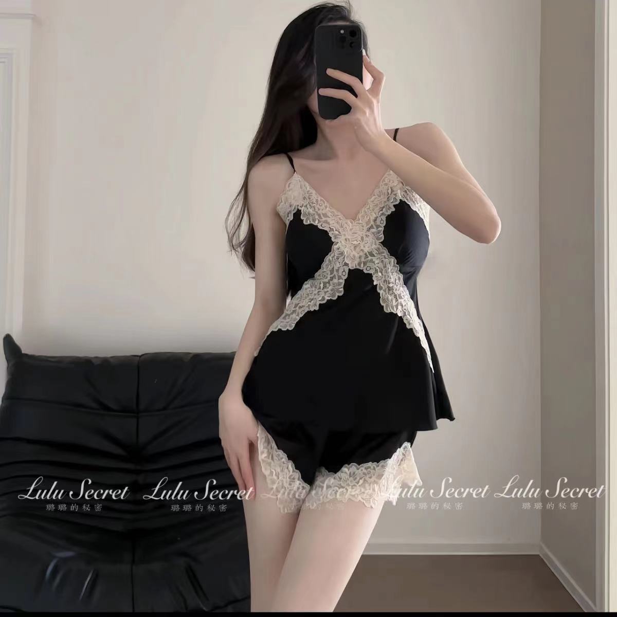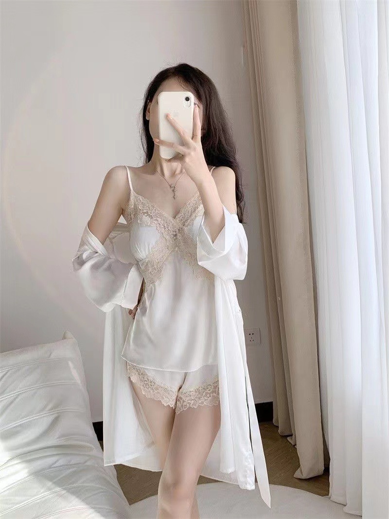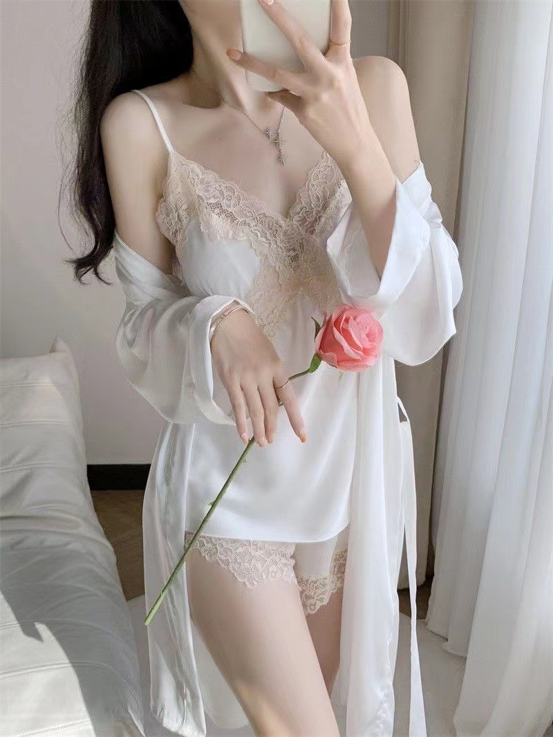 여름용 아이스 실크 슬립웨어 여성용 레이스 트림 백리스 인터넷 스타일 가슴 패드 포함 홈웨어스토어 가기