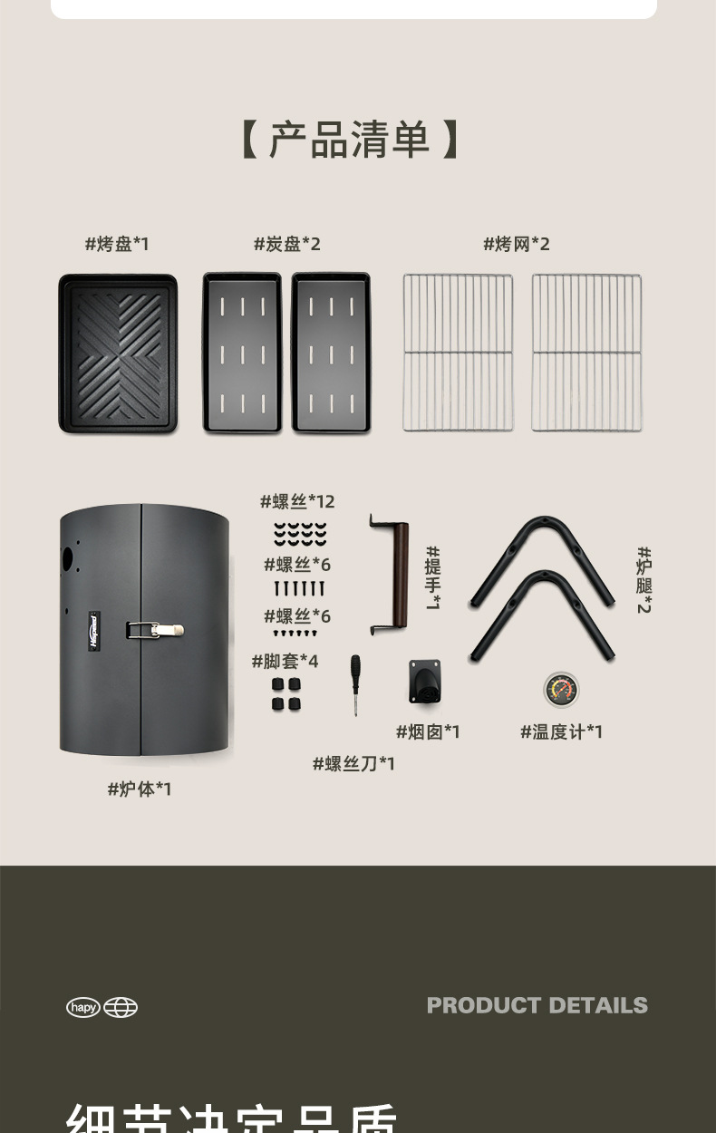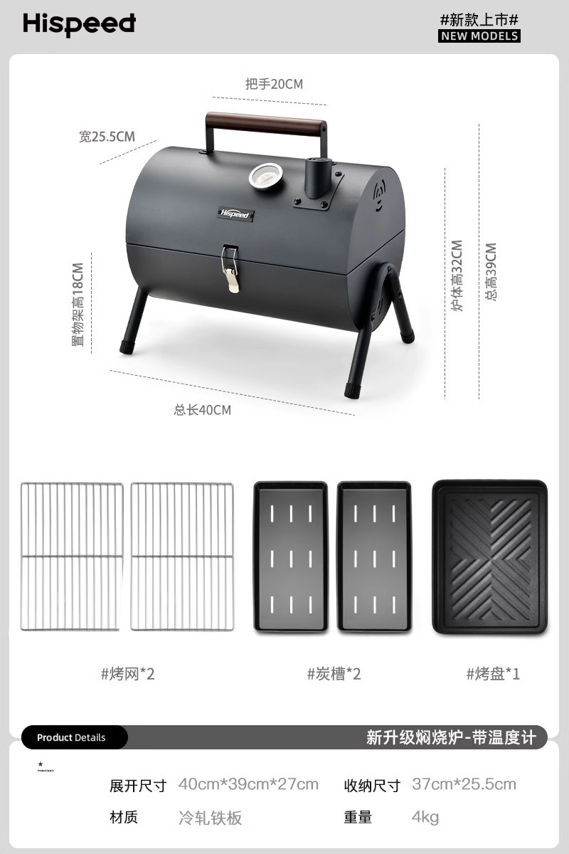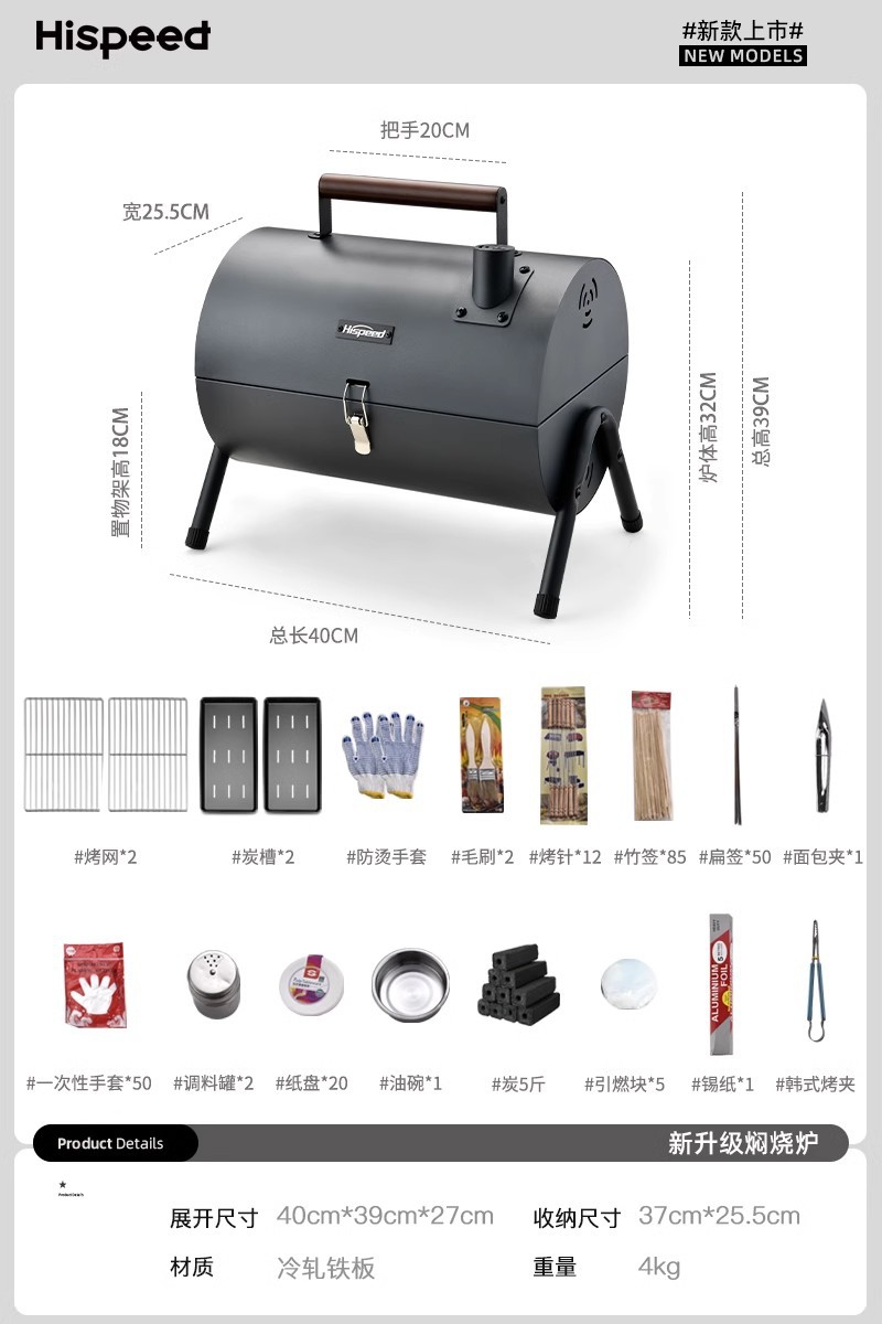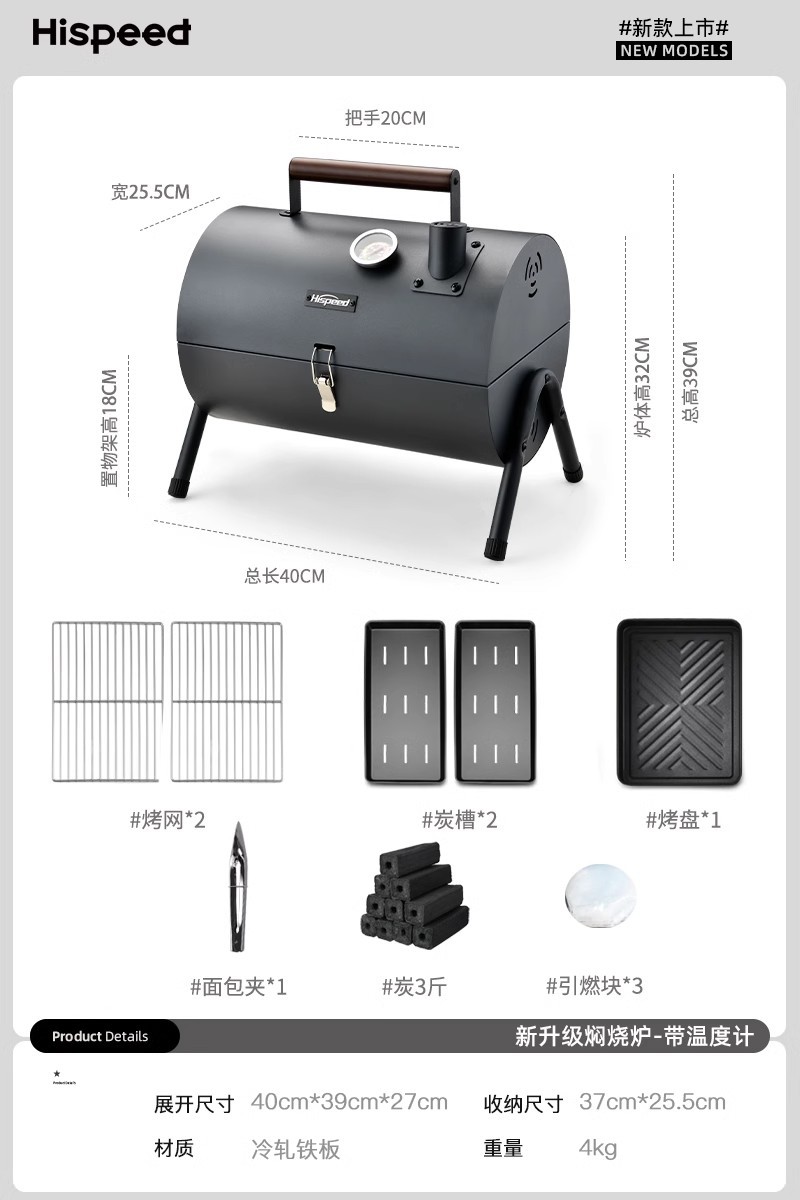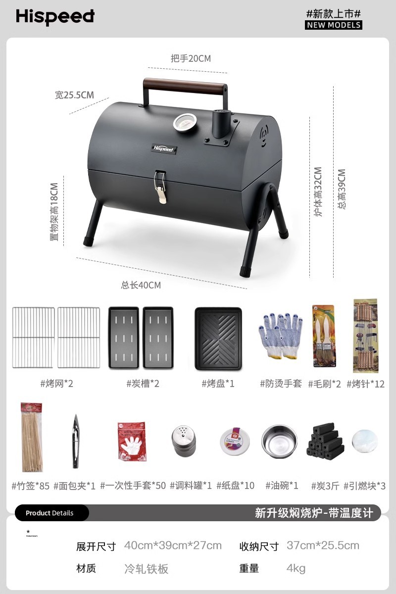 • Yanyan black-[온도 디스플레이 업그레이드 및 베이킹 트레이 보내기] + 바베큐 17 피스 세트