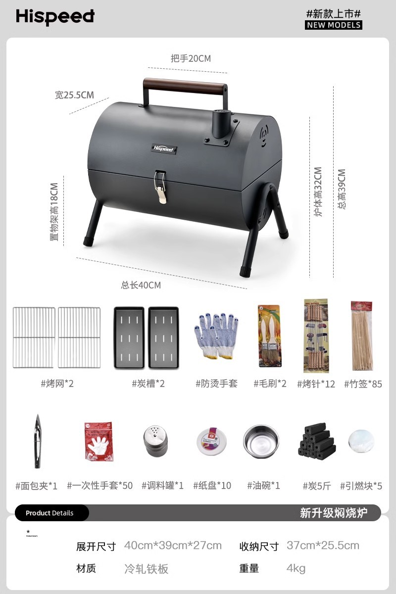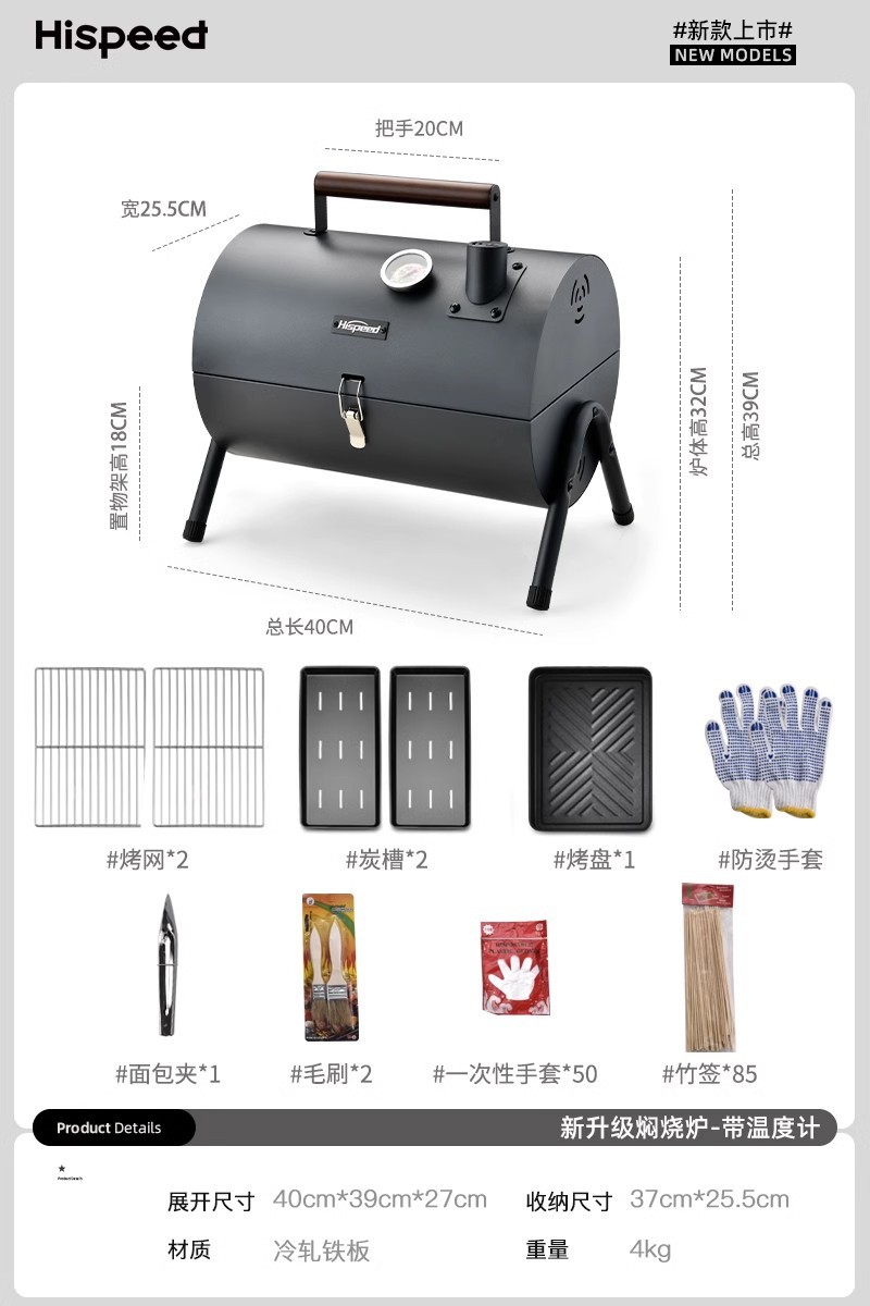 • Yanyan black-[온도 디스플레이 업그레이드 및 베이킹 트레이 보내기] + 바베큐 11 피스 세트