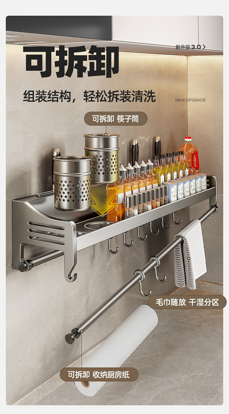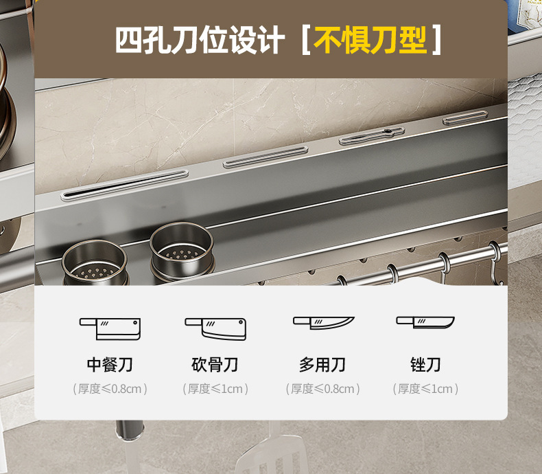 구멍이 없는 주방 수납 선반, 다기능 젓가락 및 칼 홀더, 가정용 조미료 용품 수납 벽걸이 선반
