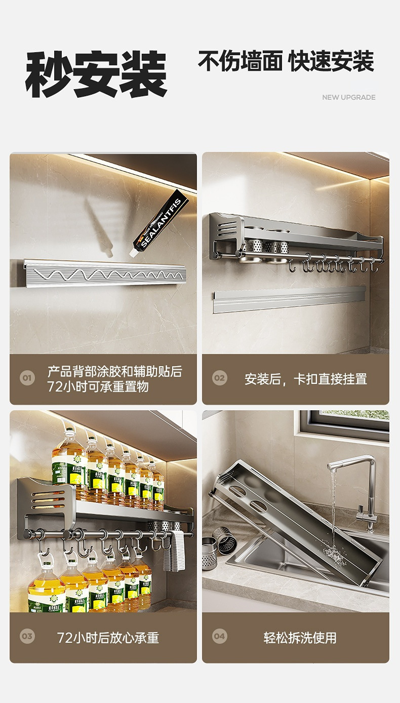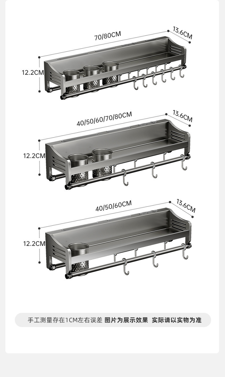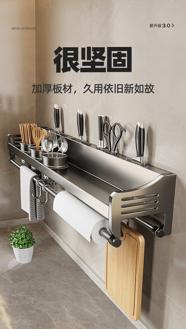 구멍이 없는 주방 수납 선반, 다기능 젓가락 및 칼 홀더, 가정용 조미료 용품 수납 벽걸이 선반스토어 가기
