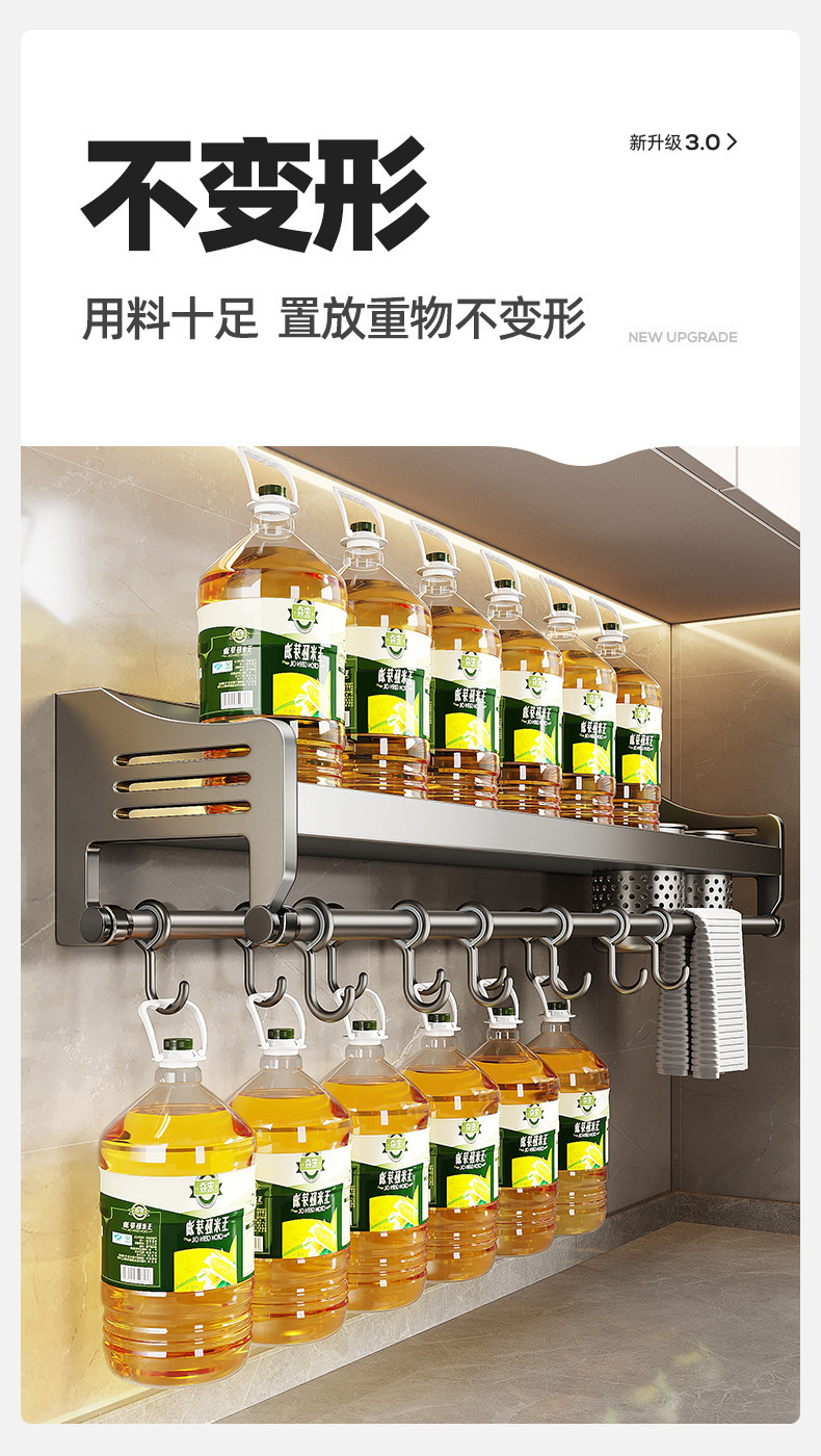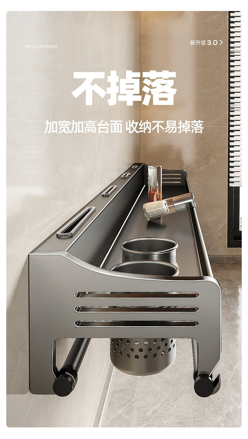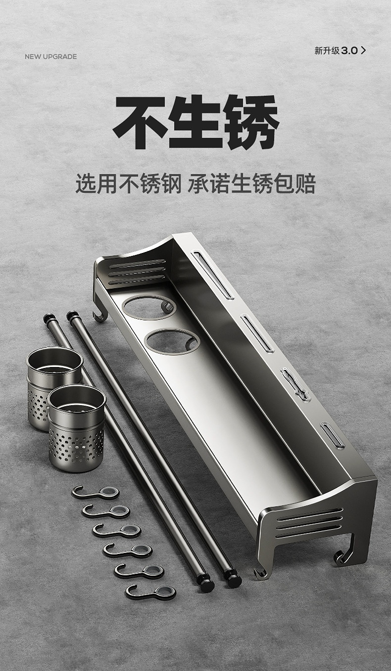 구멍이 없는 주방 수납 선반, 다기능 젓가락 및 칼 홀더, 가정용 조미료 용품 수납 벽걸이 선반스토어 가기