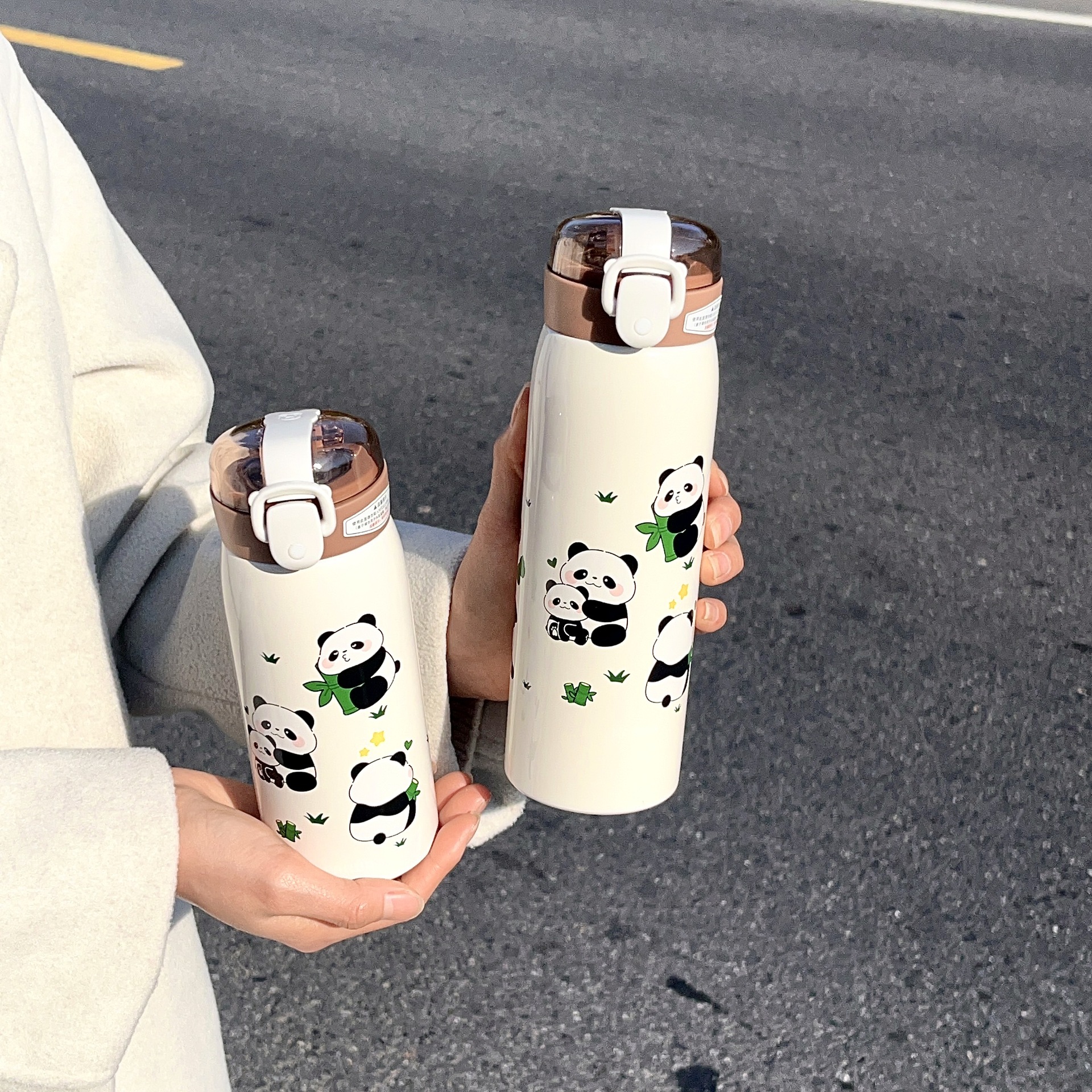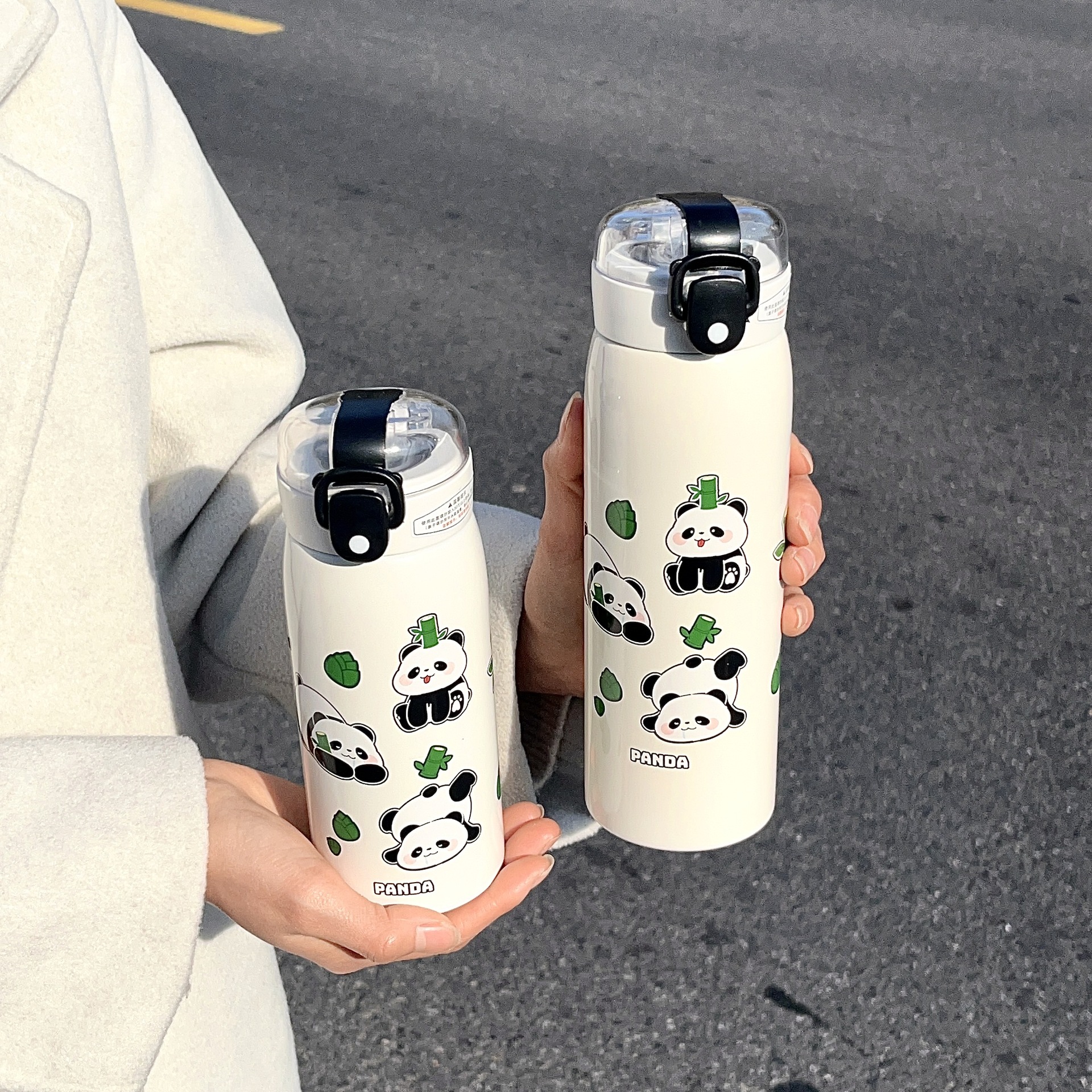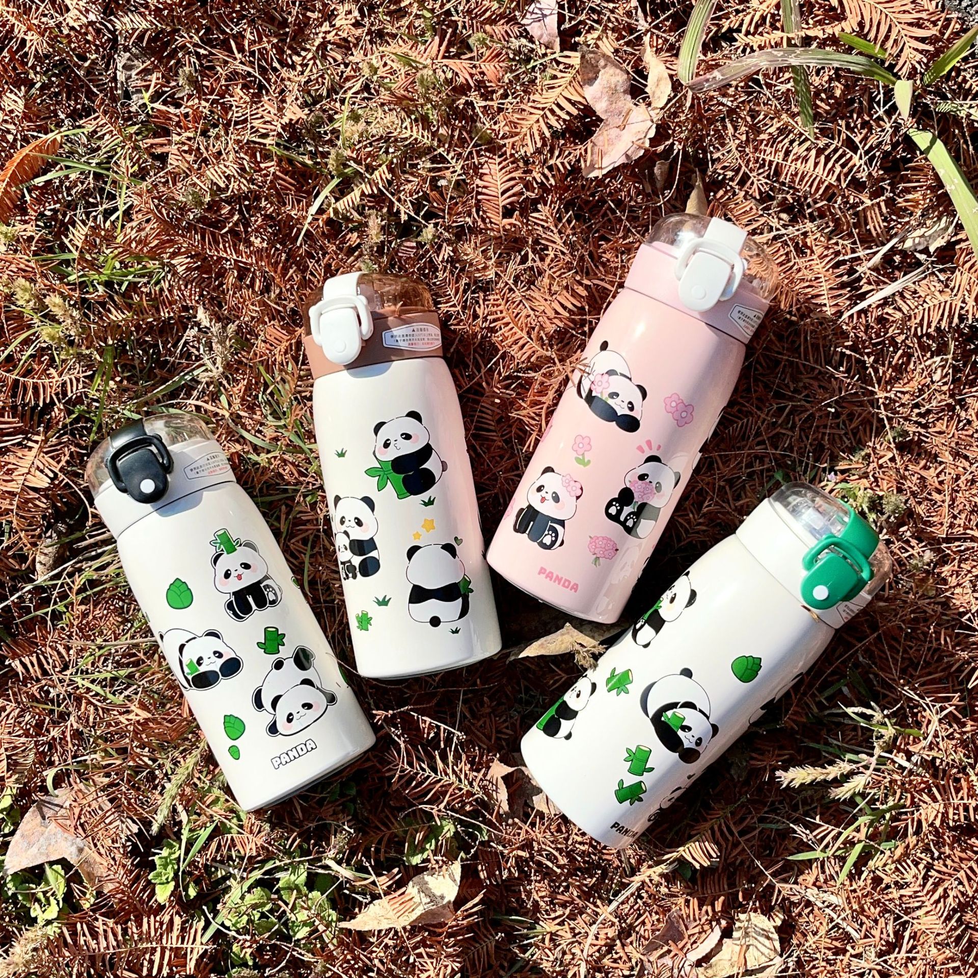 귀여운 팬더 만화 진공 컵 휴대용 소녀 사무실 마시는 컵 학생 야외 튀는 컵스토어 가기