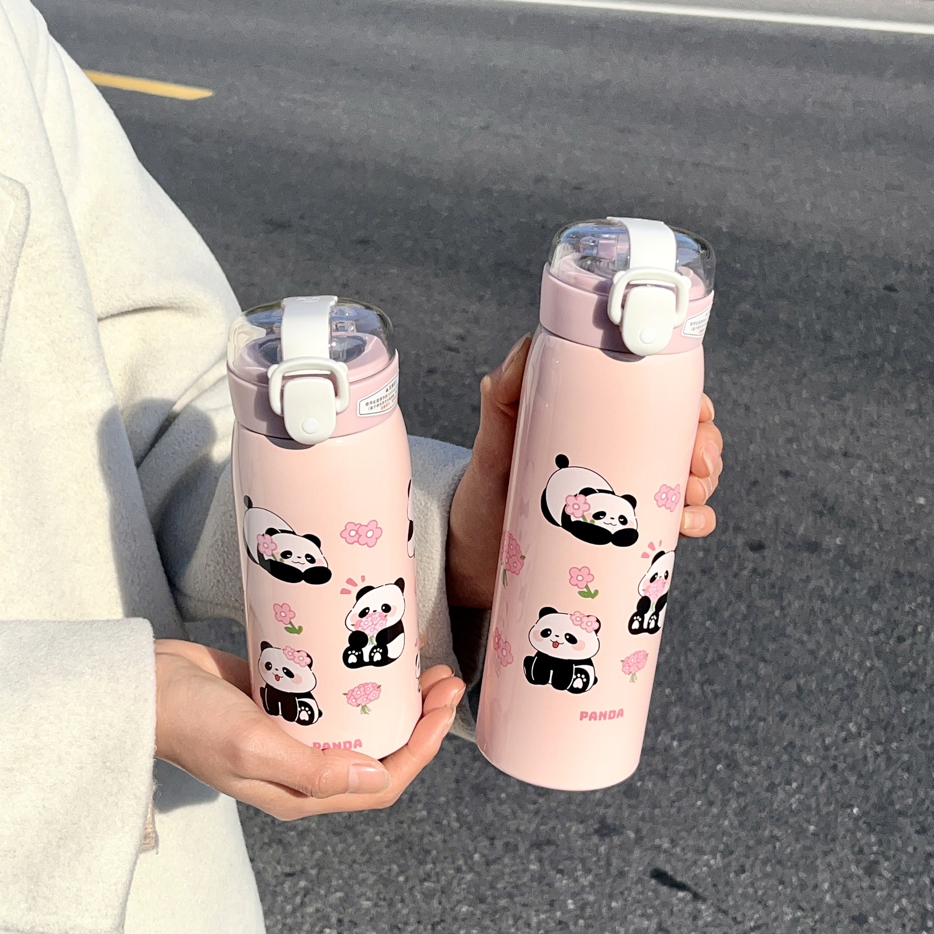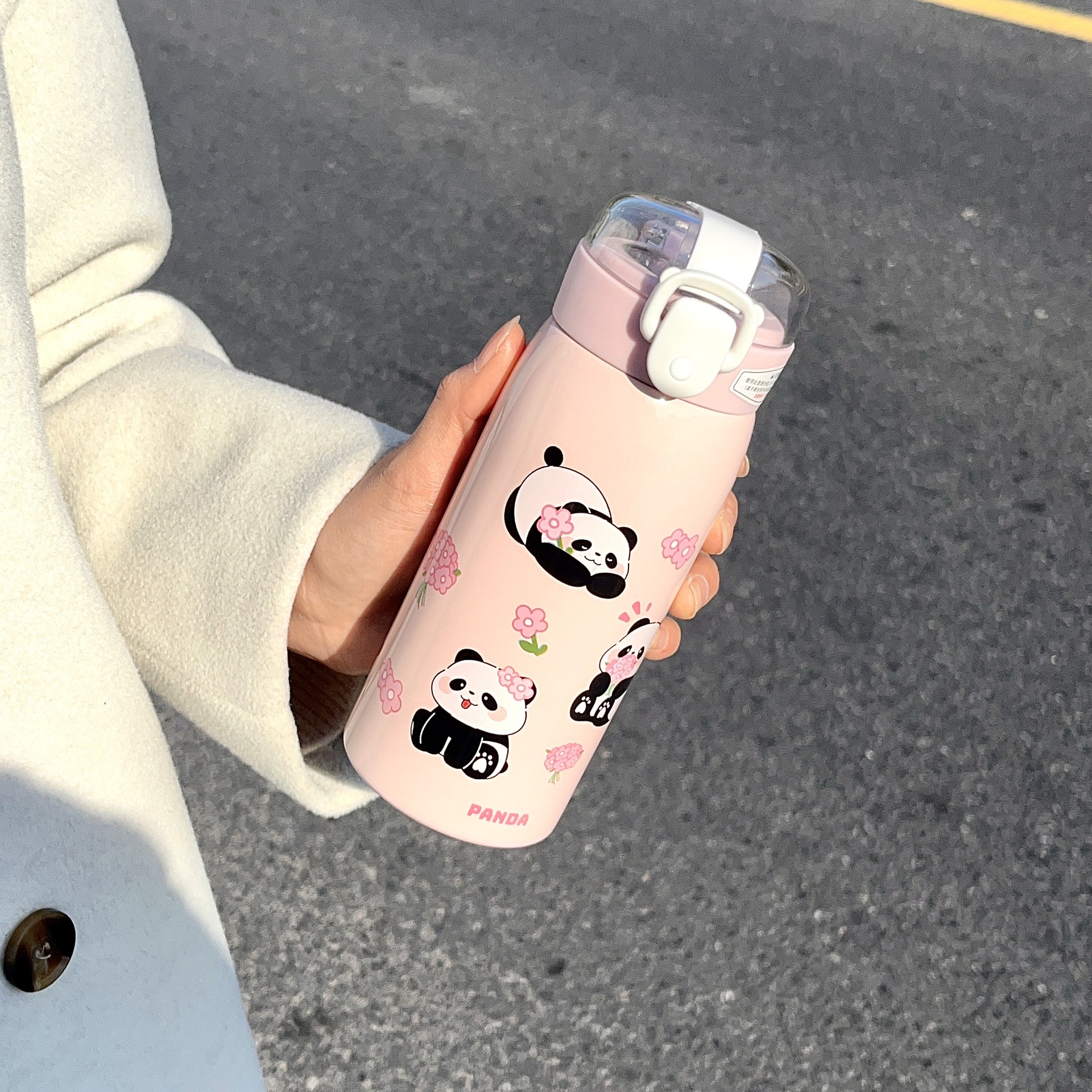 귀여운 팬더 만화 진공 컵 휴대용 소녀 사무실 마시는 컵 학생 야외 튀는 컵