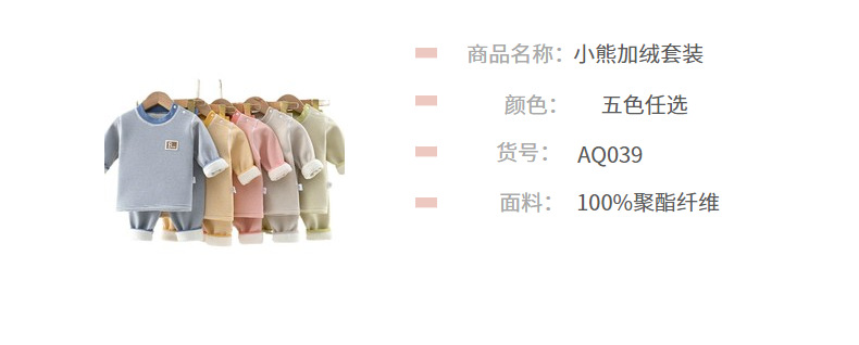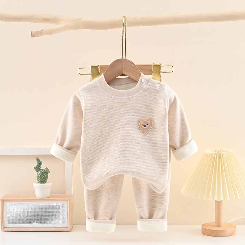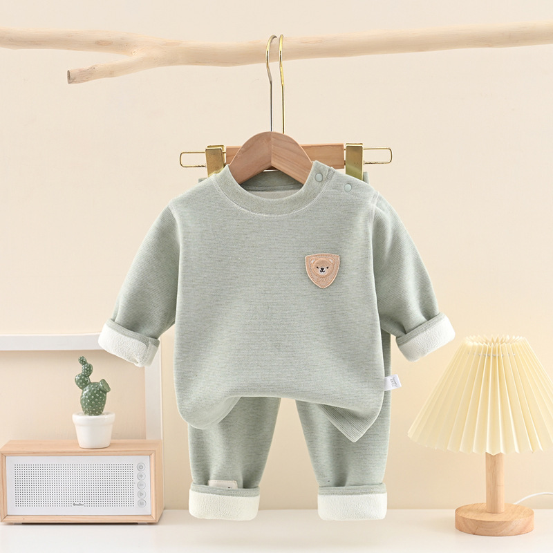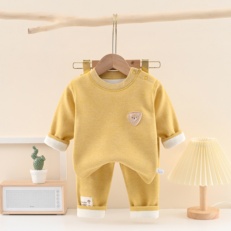 가을 겨울용 두꺼운 아동용 내의 세트, 한국 스타일 만화 곰돌이 아기 실크 캐시미어 속옷 세트스토어 가기