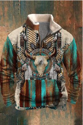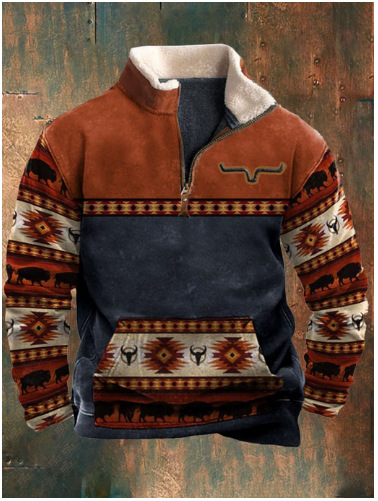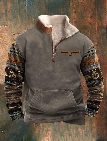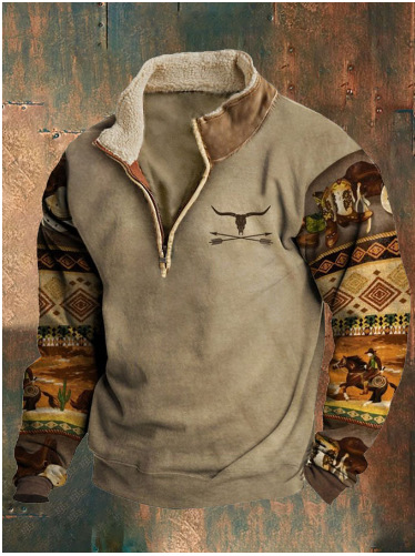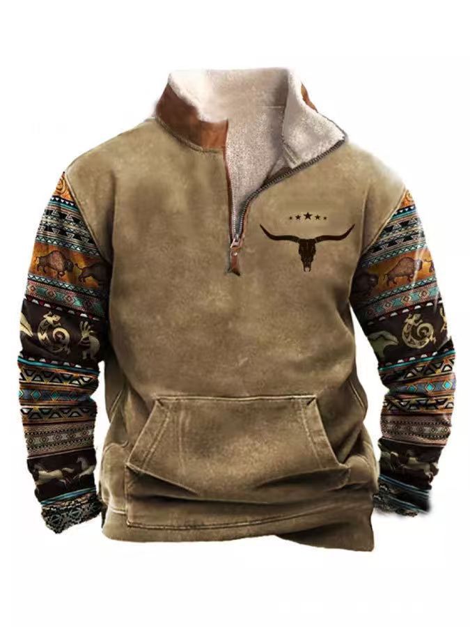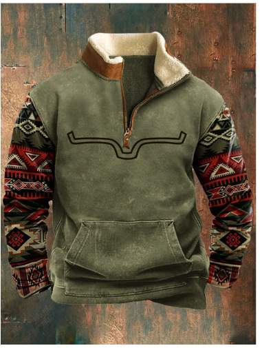 아마존 봄, 가을 남성 긴 소매 하프 지퍼 프린트 캐주얼 패션 유럽과 미국의 트렌디한 재킷 코트 외출에 적합