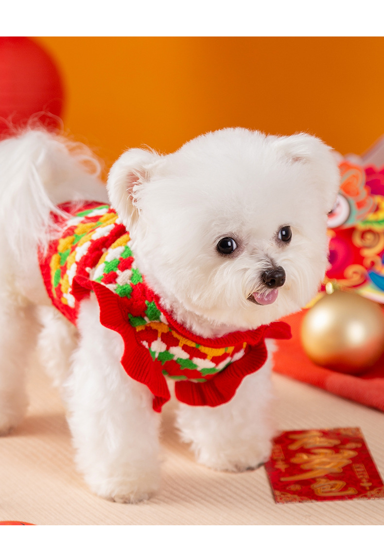 개 옷 가을과 겨울 입체 레이디 컬러 스웨터 공주 바람 고양이 옷 두 다리 스웨터 애완 동물 따뜻한